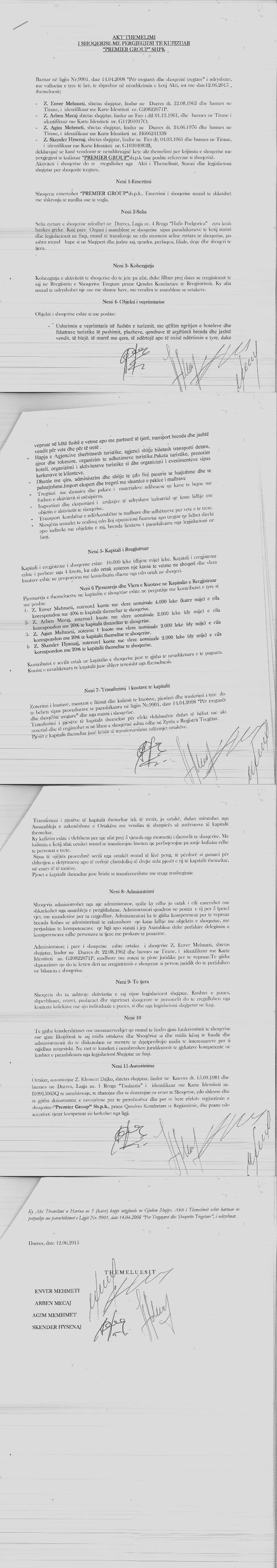 → Ekstrakt Historik i Regjistrit Tregtar date 16.09.2025 → Akt themelimi i Shoqerise → Vendim date 01.06.2016 → Kontrate shitje Kuotash me Kusht date 26.12.2024 (Skënder Hysenaj) → Kontrate shitje me kusht date 26.12.2024 (Arben Meçaj) → Kontrate shit-blerje kuotsh kapitali me te drejte riblerje date 11.04.2025 → Ekstrakt Historik i Regjistrit te pronarit Perfitues depozituar ne QKB me date 18.06.2025 |