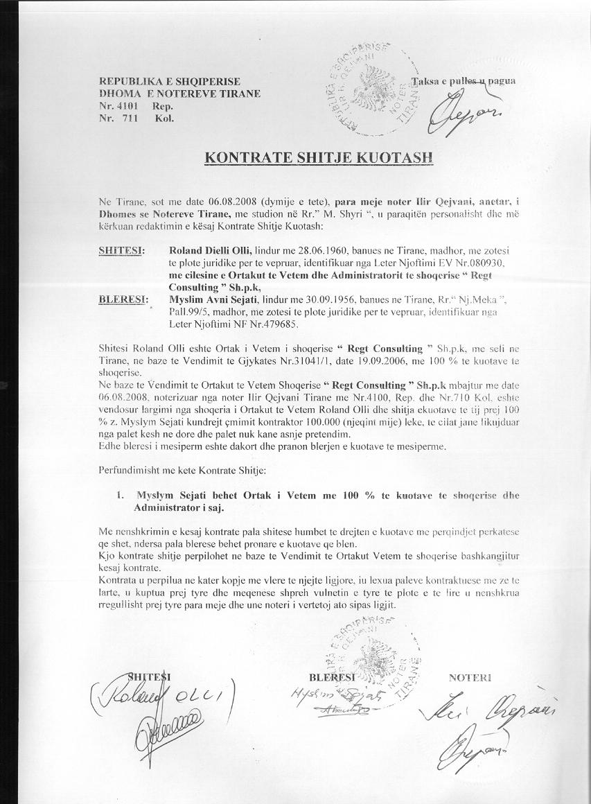 → Ekstrakt Historik i Regjistrit Tregtar, date 16.12.2021 → Kontate e shitjes se kuotave, date 06.08.2008 → Kontrate shitje kuotash, date 05.12.2012 → Kontrate shitje kuotash, date 27.12.2013 → Vendimi i asamblese se ortakeve, date 01.10.2015 → Dokumenta te shoqerise nder vite |