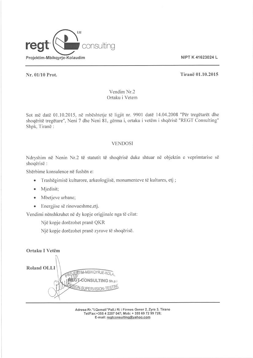 | Emërtime të tjera Tregtare: | REGT CONSULTING |
