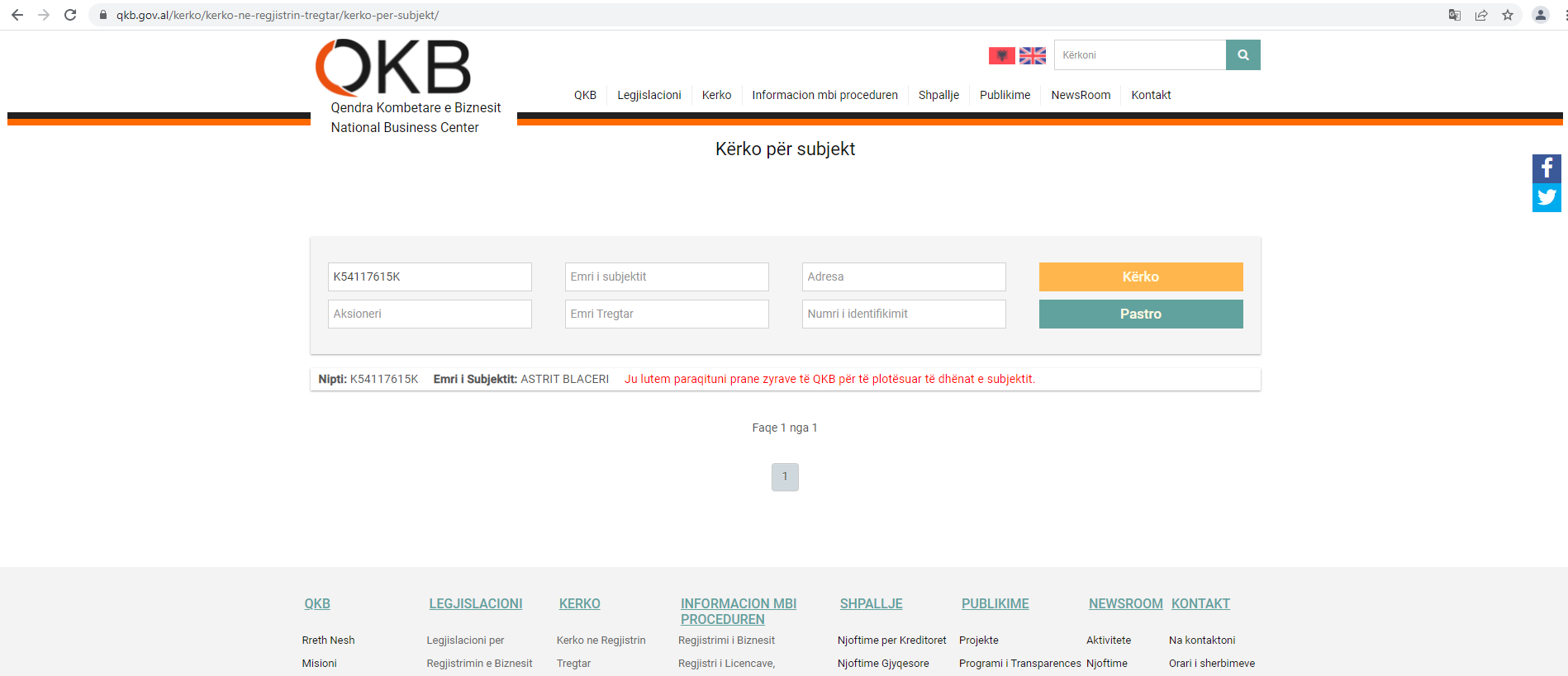 → Te dhenat e subjektit Astrit Blaceri date 14.02.2022 |
