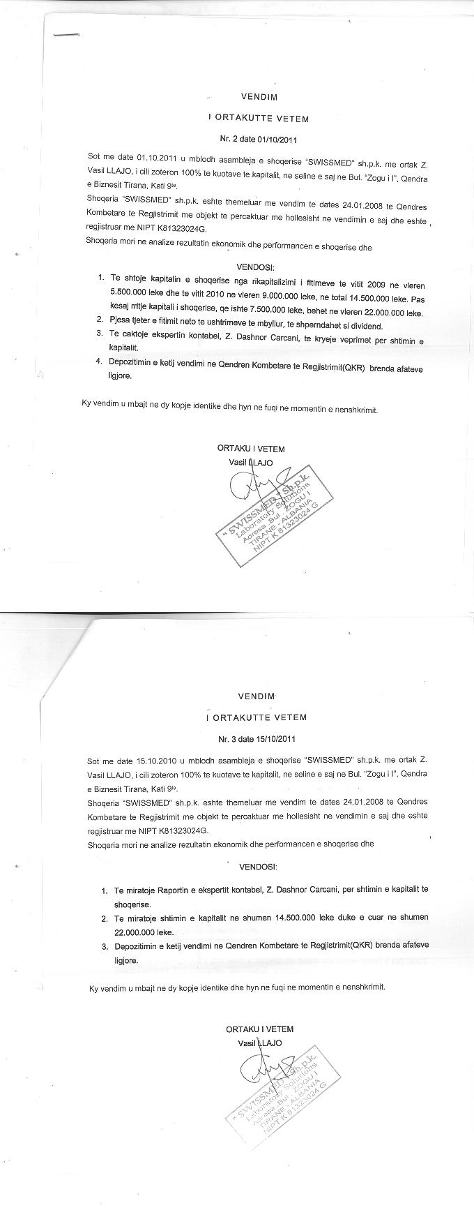 → Ekstrakt Historik i Regjistrit Tregtar date 16.05.2025 → Kontrate dhurimi Kuotash date 04.09.2018 → Vendimi per zmadhimin e kapitalit date 28.08.2019 → Kontrate dhurimi kuotash date 12.12.2022 → Ekstrakt Historik i Regjistrit Tregtar date 23.08.2025 → Akt themelimi i Shoqerise → Vendim i Asamblesë së Ortakut për Zmadhimin e Kapitalit datë 24.03.2009 → Vendim i Ortakut të Vetëm për Zmadhimin e Kapitalit datë 01.10.2011 → Vendim i Ortakut të Vetëm për Zmadhimin e Kapitalit datë 19.10.2013 → Vendim i Ortakut të Vetëm për Zmadhimin e Kapitalit datë 25.05.2016 → Vendim i Ortakut të Vetëm për Zmadhimin e Kapitalit datë 30.06.2017 → Kontratë Dhurimi Kuotash datë 04.09.2018 → Vendim i Ortakut të Vetëm për Zmadhimin e Kapitalit datë 28.08.2019 → Kontratë Dhurimi Kuotash datë 12.12.2022 → Kontratë Shitblerje Kuotash Kapitali datë 23.06.2025 |