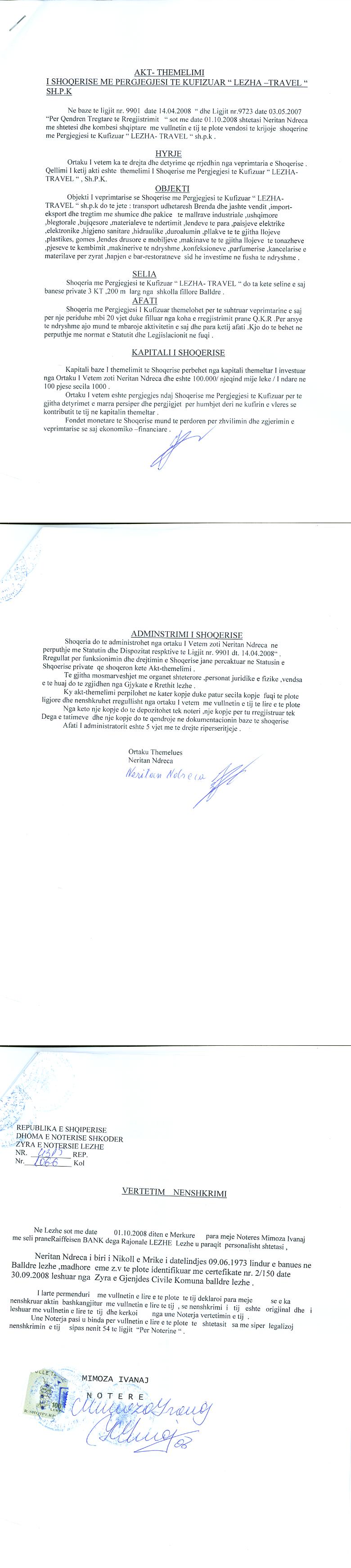 → Ekstrakt historik i regjistrit tregtar date 16.10.2021 → Akti i themelimit |