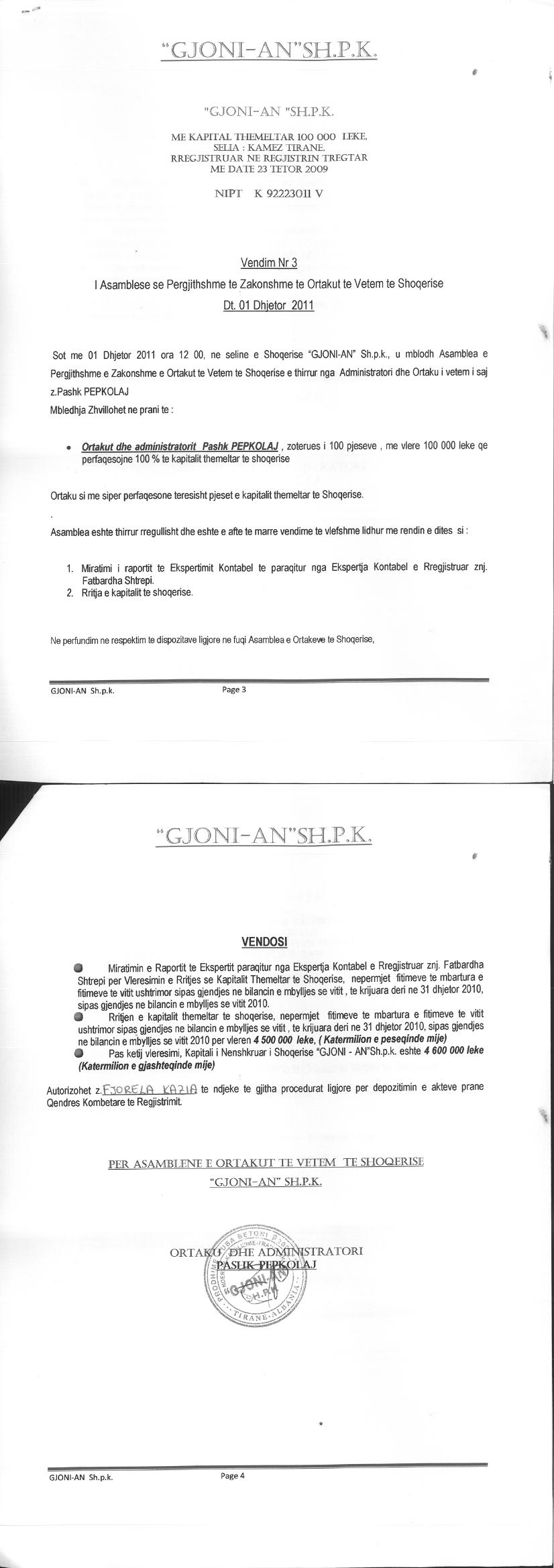 → Ekstrakt historik i regjistrit tregtar date 09.09.2021 → Akti i themelimit → Vendimi i asamblese se ortakeve per miratimin e raportit te zmadhimit te kapitalit date 01.12.2011 |