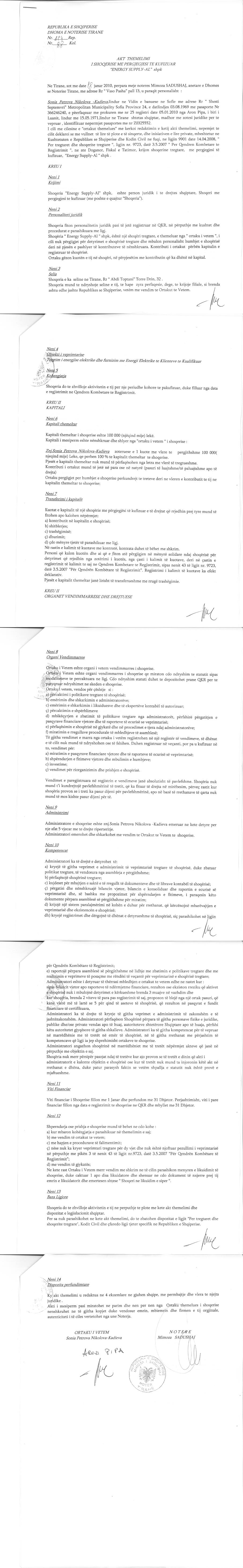 → Ekstrakt historik i regjistrit tregtar date 11.04.2022 → Akti i themelimit → Kerkese per pezullimin e aktivitetit te shoqerise date 06.04.2011 → Kerkese per heqje nga statusi i pezulluar date 19.11.2012 |