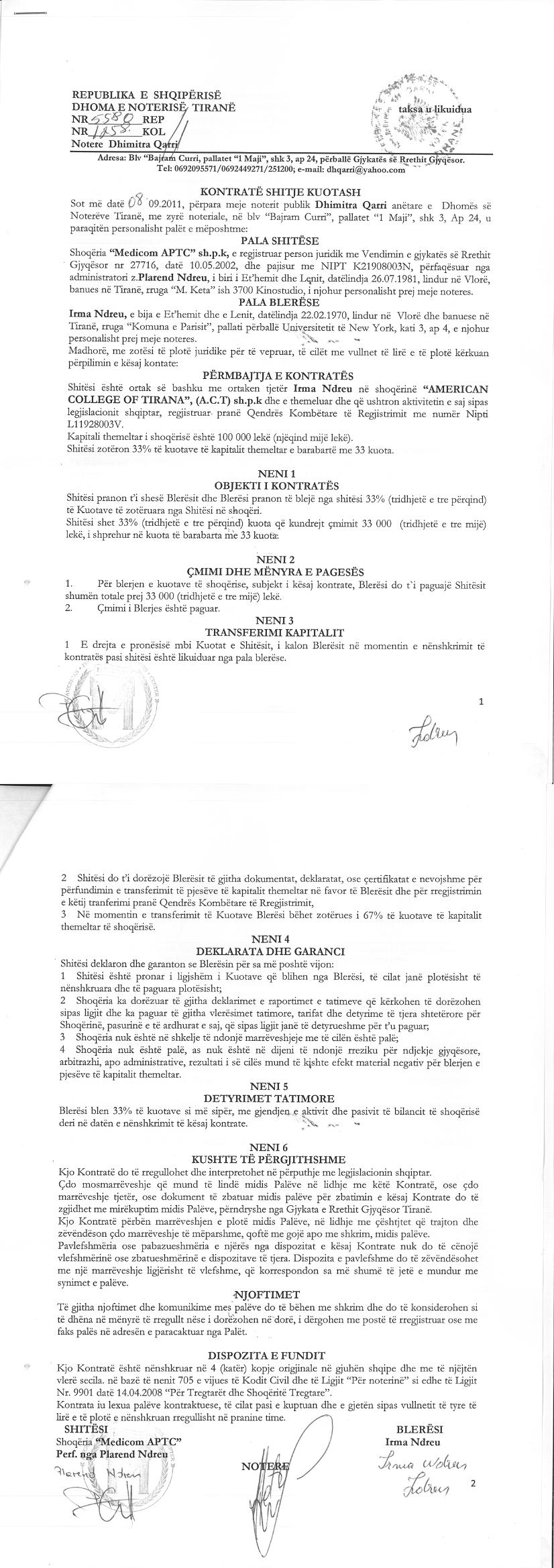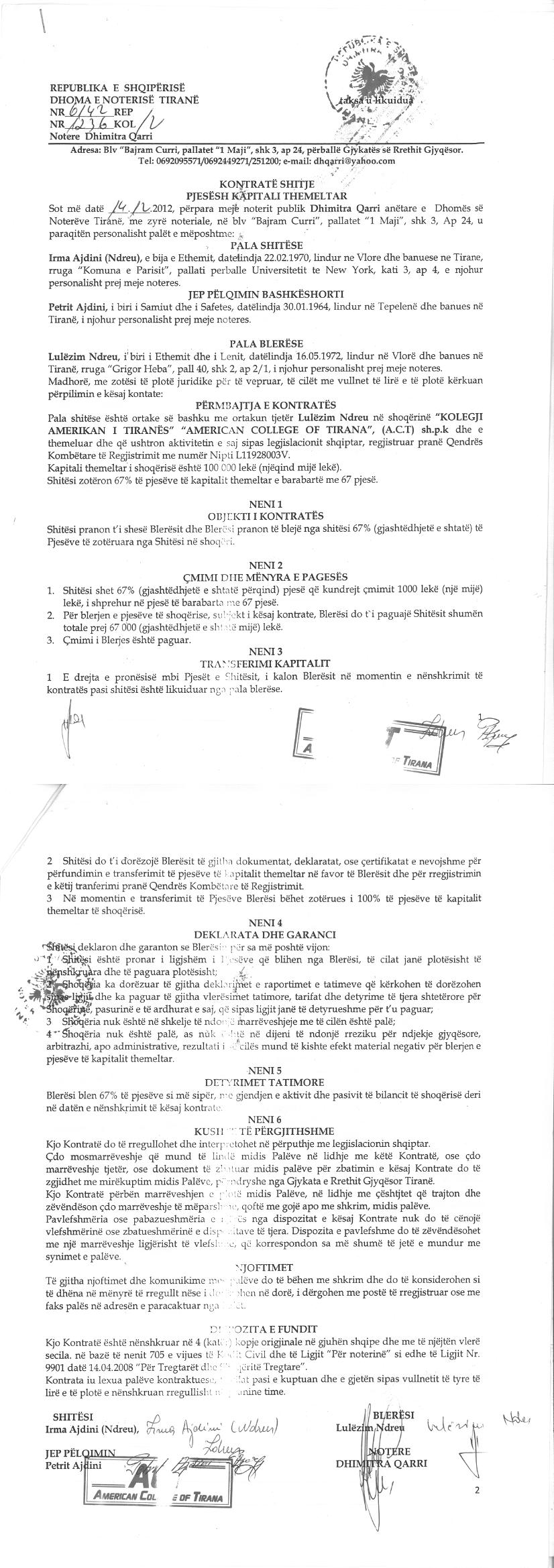 → Ekstrakt Historik i Rregjistrit Tregtar 27.06.2022 → Akt themelimi i Shoqerise → Kontrate Shitblerje Kuotash date 08.09.2011 → Kontrate Shitblerje Kuotash date 14.12.2012 |