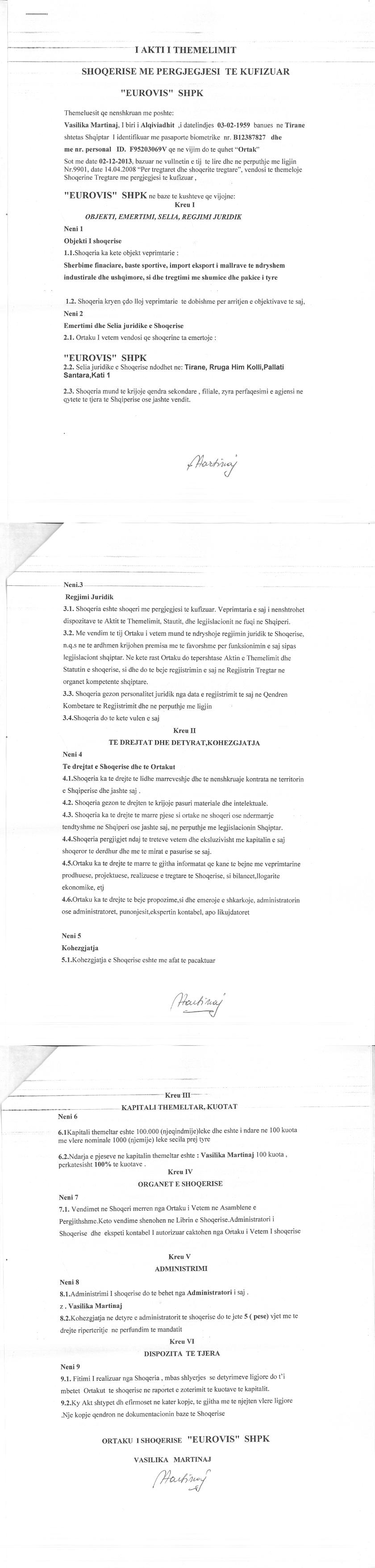 | Objekti i Veprimtarisë: | Sherbime finaciare, baste sportive, import eksport i mallrave te ndryshem industirale dhe ushqimore, si dhe tregtimi me shumice dhe pakice i tyre |