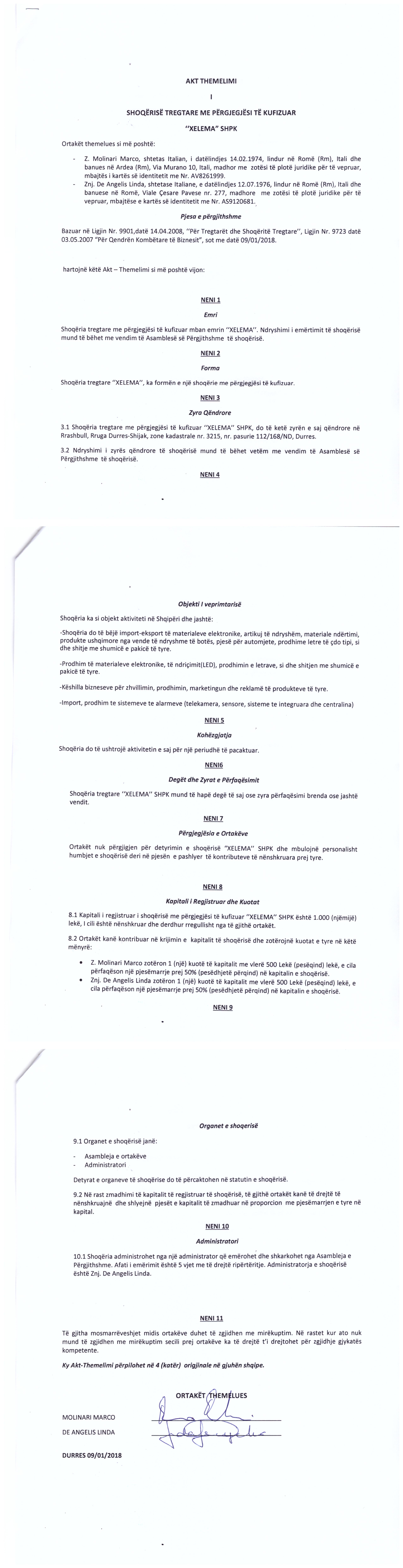 → Akti I Themelimit te Shoqerise |