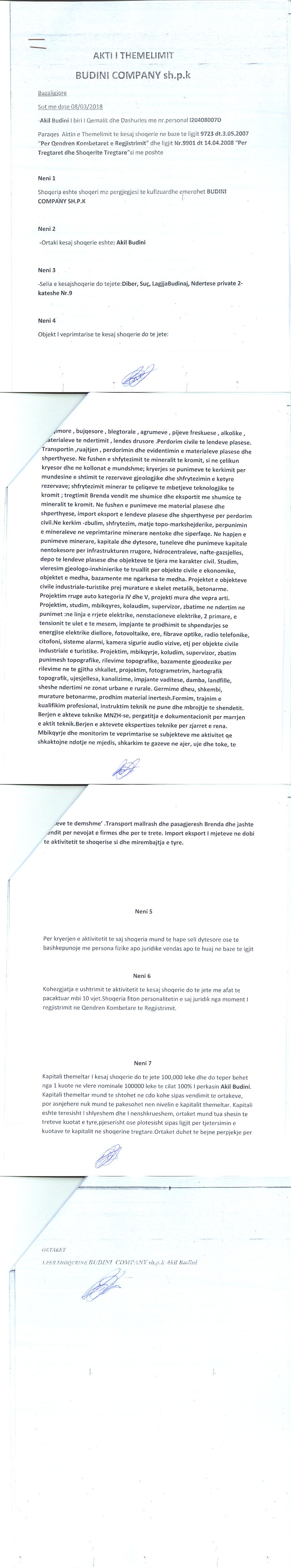 Emërtime të tjera Tregtare: | BUDINI COMPANY shpk |