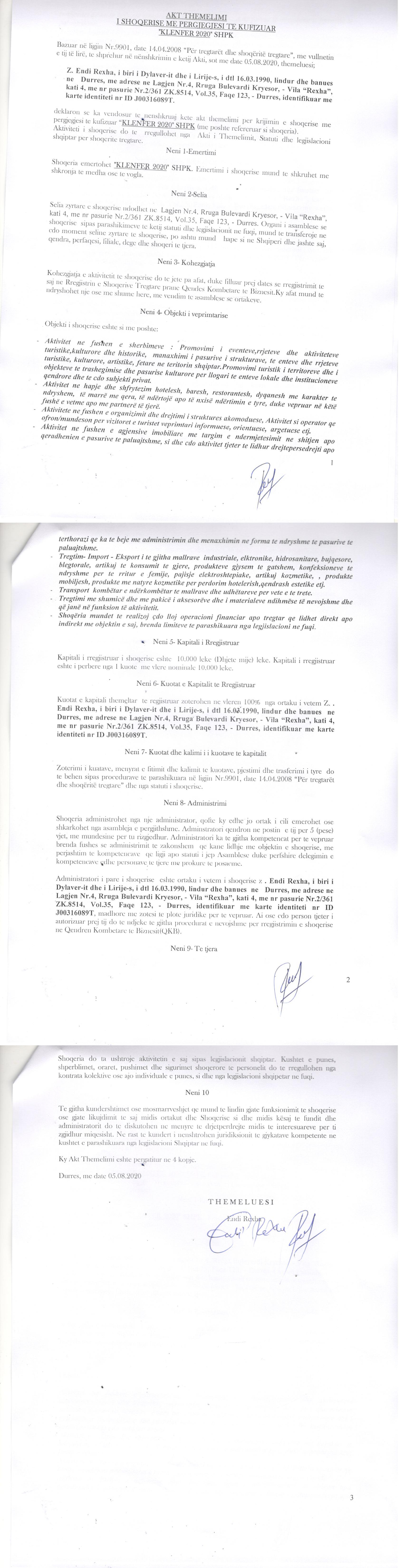 → Ekstrakti Historik I Regjistrit Tregtar date 26.08.2020 |