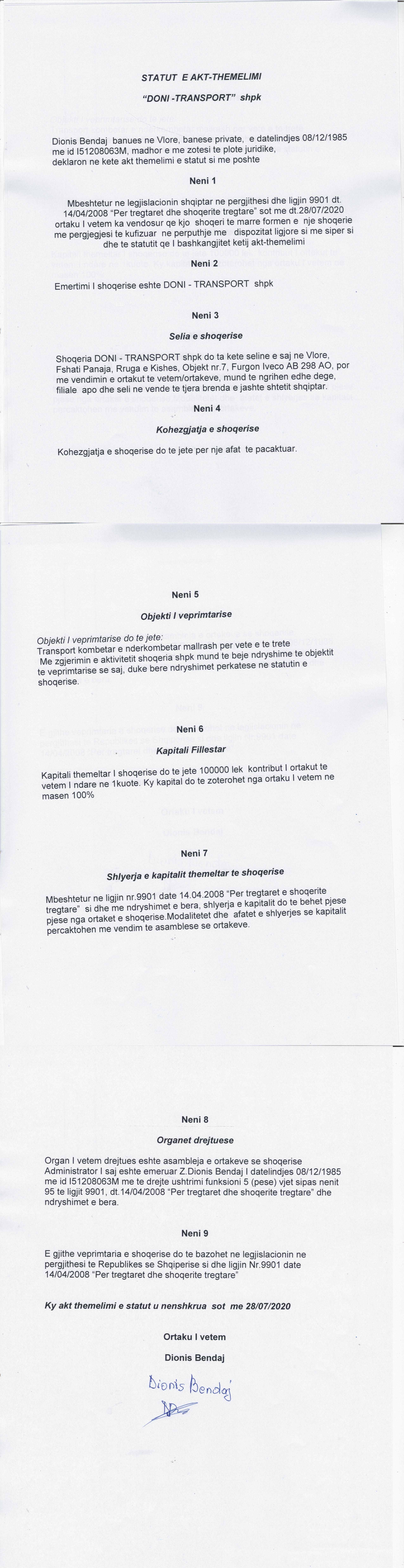 | Emërtime të tjera Tregtare: | DONI - TRANSPORT |