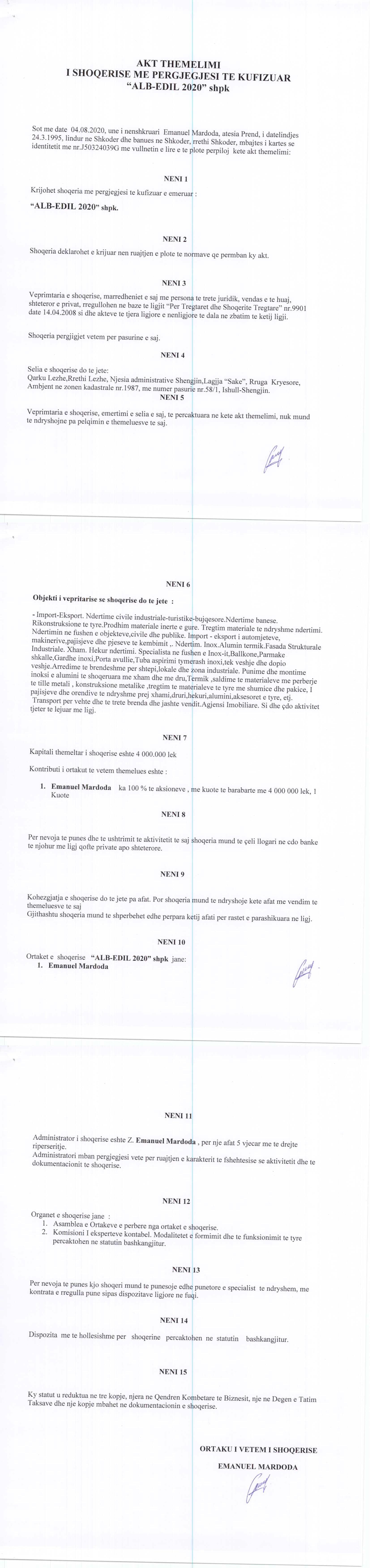 | Emërtime të tjera Tregtare: | “ALB- EDIL 2020” shpk |