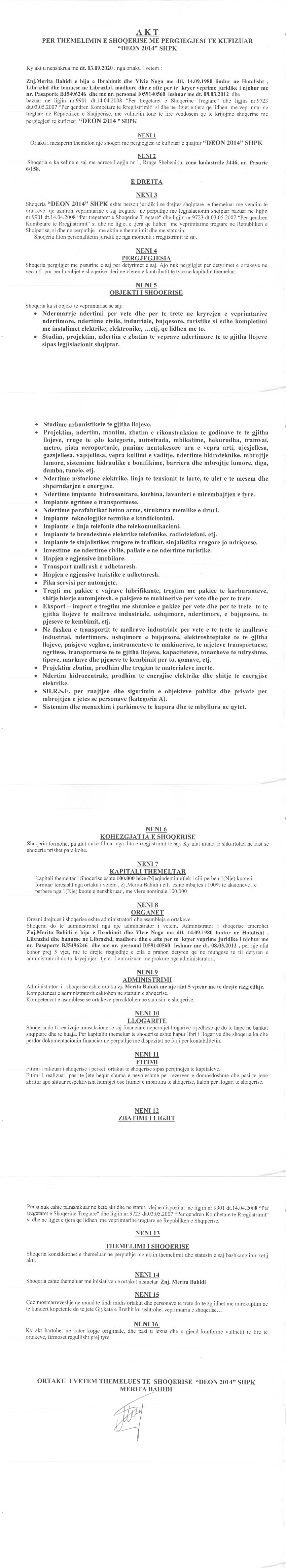| Forma ligjore: | Shoqëri me Përgjegjësi të Kufizuar SH.P.K |