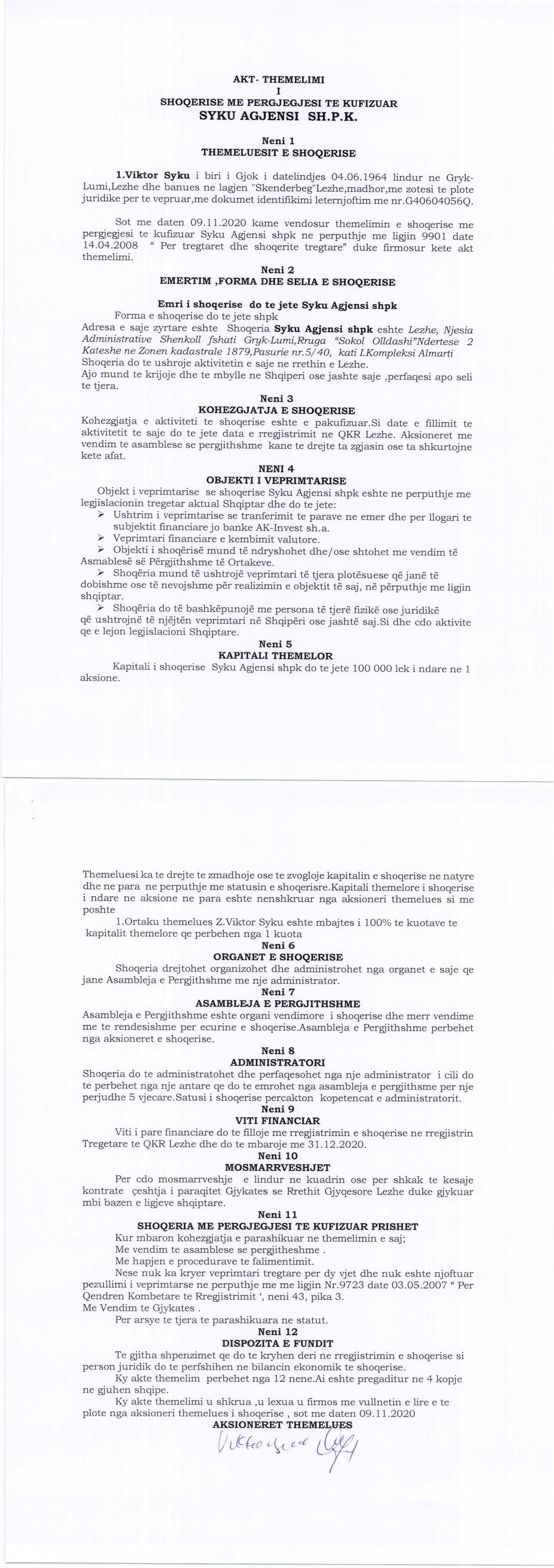→ Akti I Themelimit te Shoqerise |