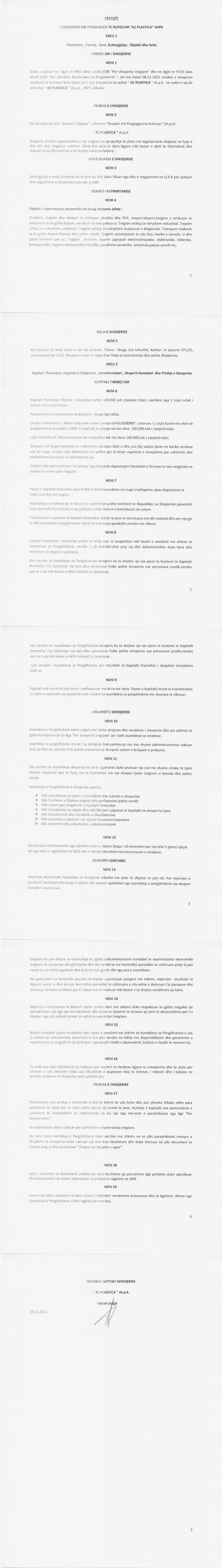 → Ekstrakti Historik i Regjistrit Tregtar date 16.03.2022 → Statuti i Shoqerise → Vendimi i asamblese se pergjithshme date 06.01.2022 |