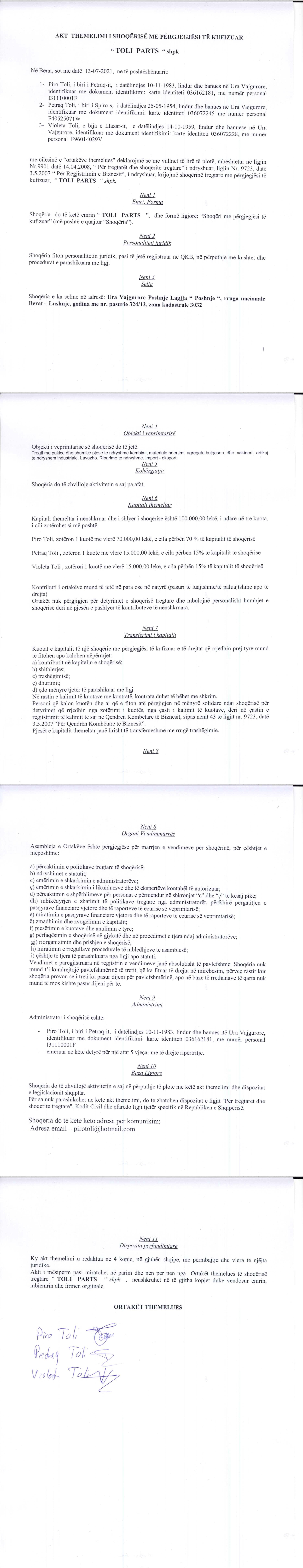 → Ekstrakt Historik i Regjistrit Tregtar, date 11.02.2022 → Statuti i shoqerise, date 13.07.2021 → Akt themelimi, date 13.07.2021 |