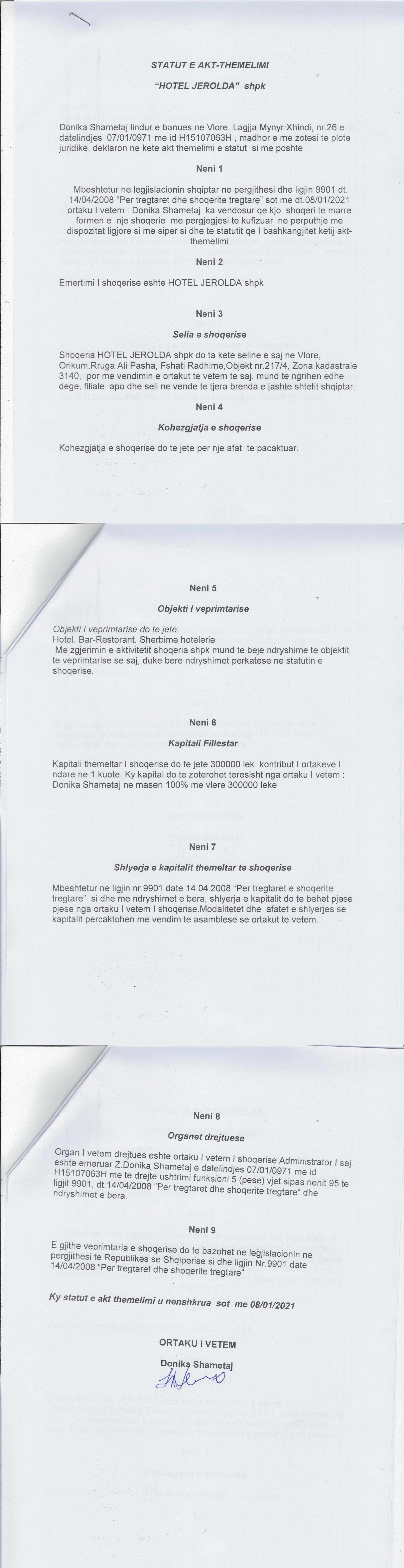 | Emërtime të tjera Tregtare: | HOTEL JEROLDA |