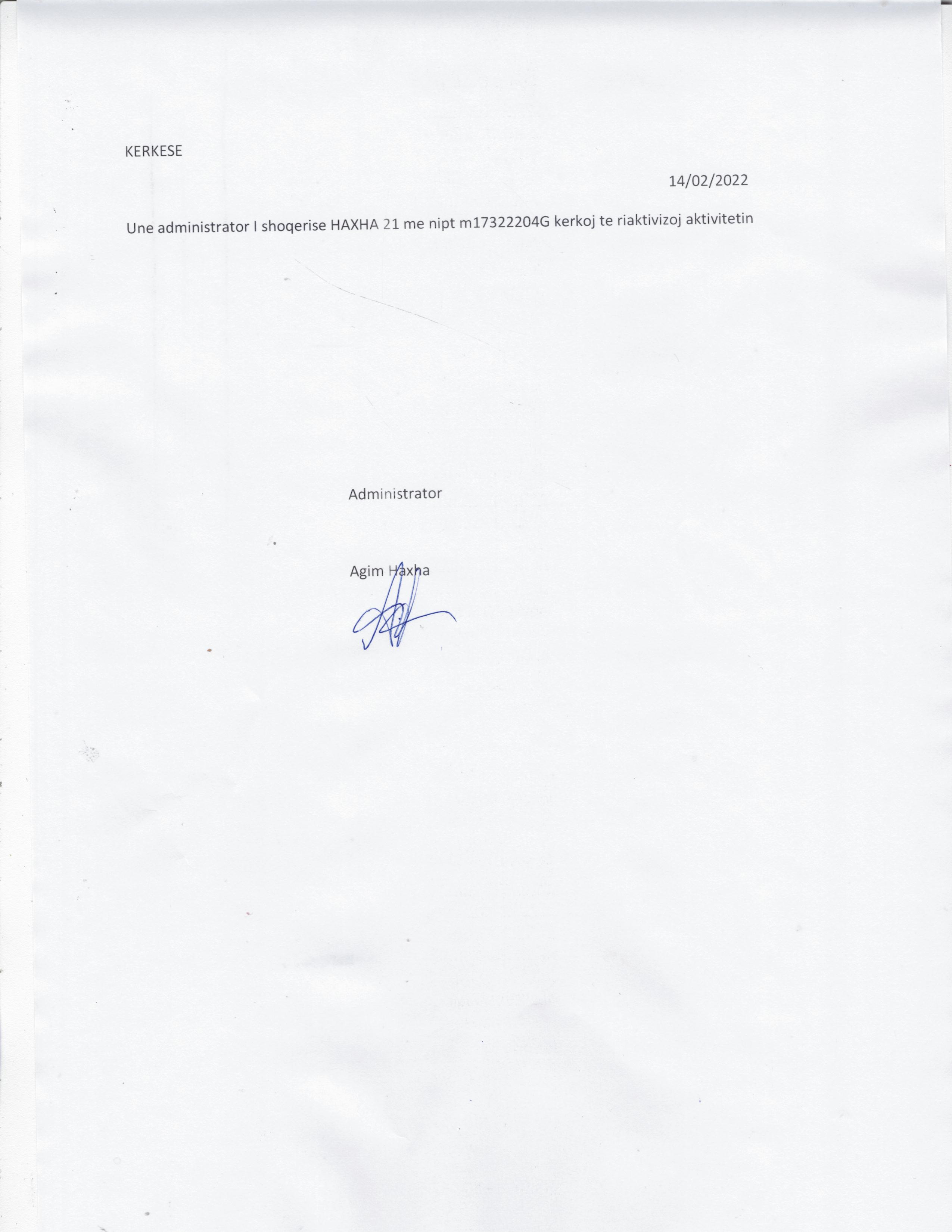 → Ekstrakti Historik i Regjistrit Tregtar date 14.03.2022 → Statuti i Shoqerise → Kerkese date 14.02.2022 |