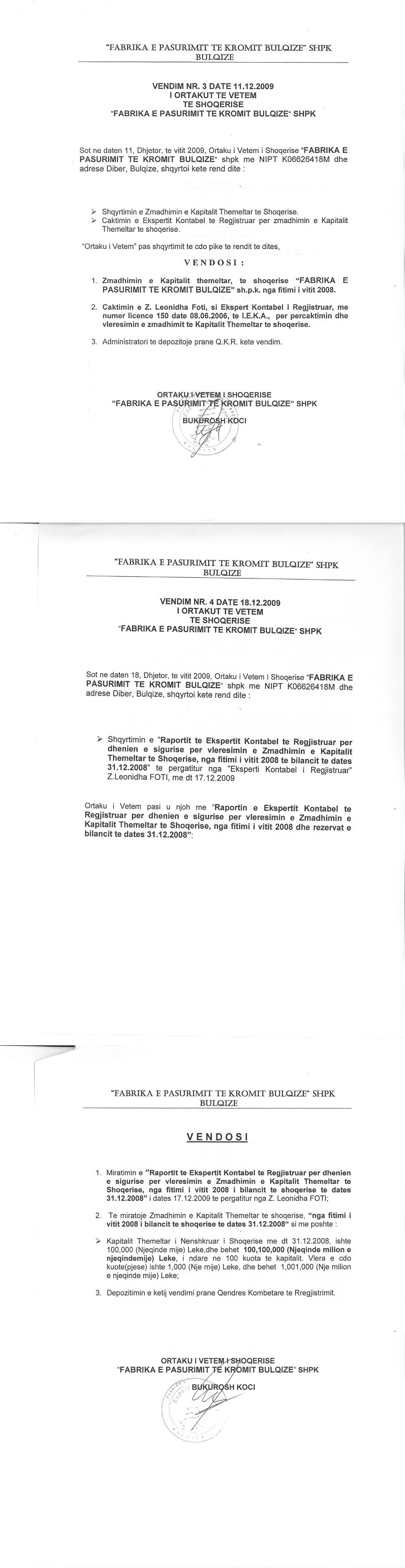 → Ekstrakti Historik i Regjistrit Tregtar date 25.05.2022 → Akt themelimi dhe Statuti i Shoqerise → Vendimi i Ortakut te Vetem per Zmadhim Kapitali, date 18.12.2009 → Marreveshje Siguruese date 29.09.2017 → Ekstrakti Historik i Regjistrit Tregtar date 18.04.2024 |