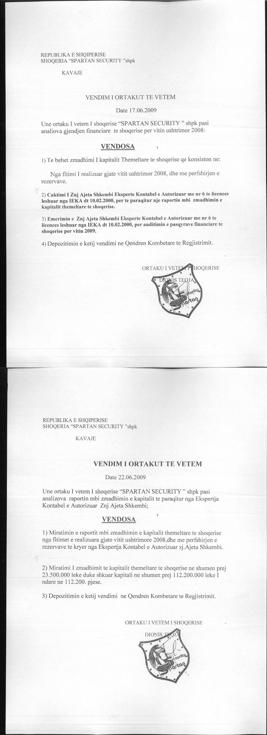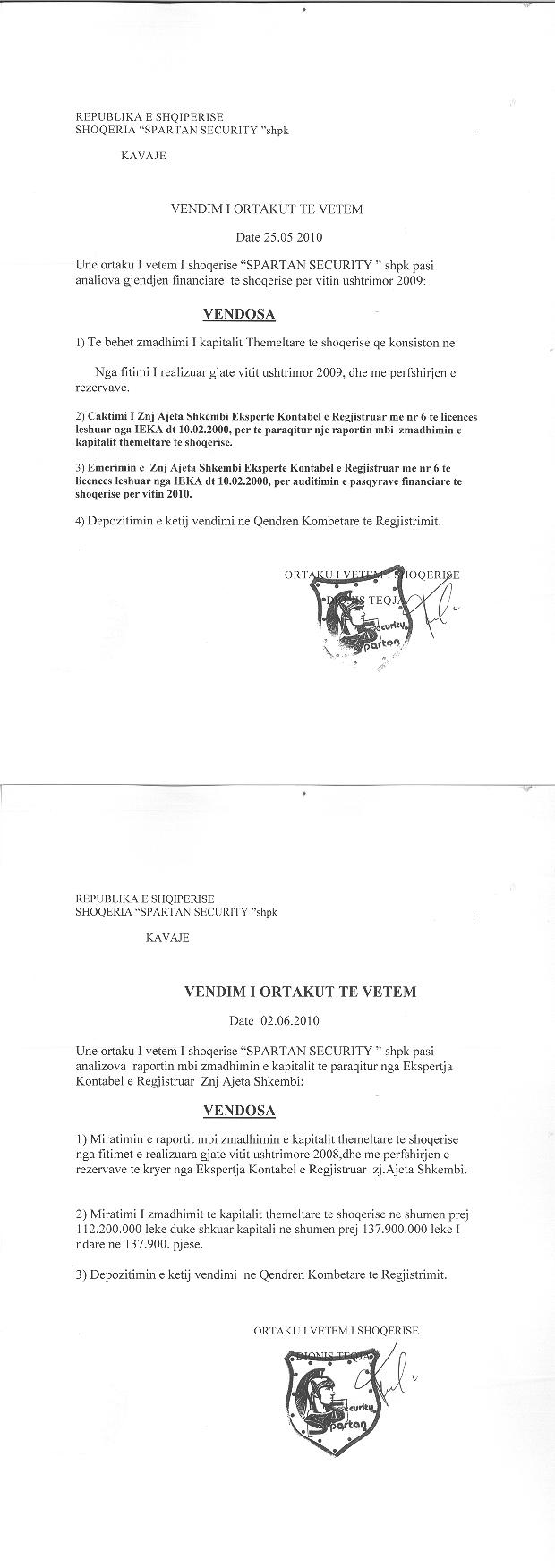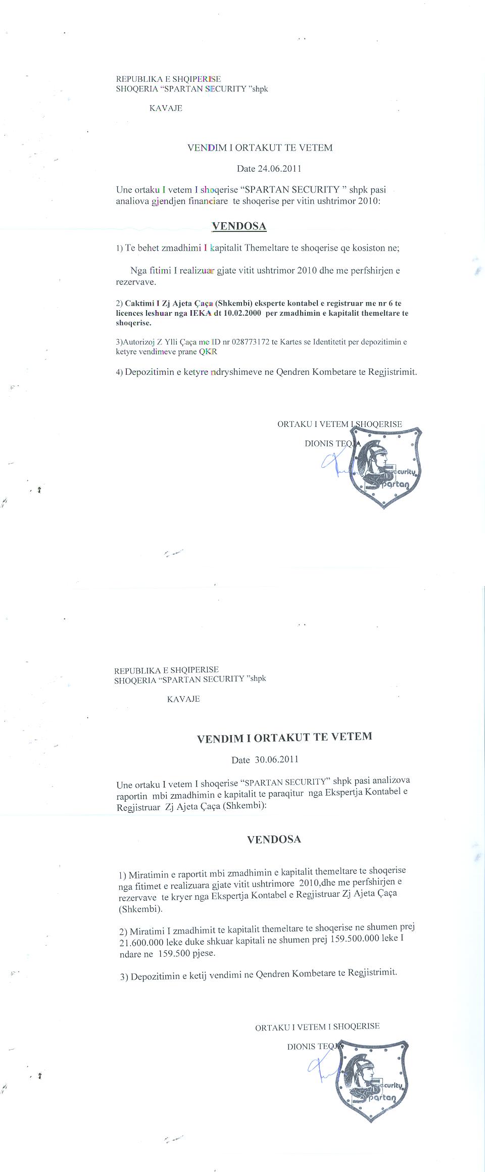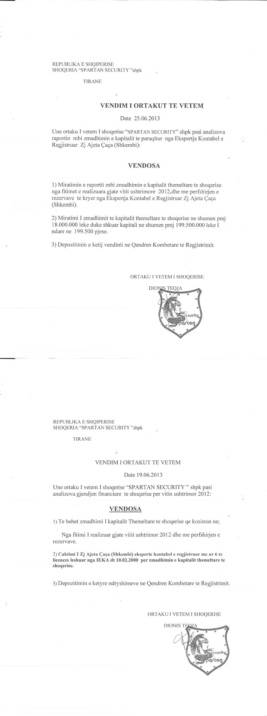 → Ekstrakti Historik i Regjistrit Tregtar date 12.05.2022 → Statuti fillestar i Shoqerise dhe dokumenta te ndryshem → Statuti i Shoqerise → Vendimi I ortakut te vetem te shoqerise date 19.05.2008 → Vendimi i ortakut te vetem te shoqerise date 22.06.2009 → Vendim i ortakut te vetem te shoqerise date 02.06.2010 → Vendim i ortakut te vetem te shoqerise date 30.06.2011 → Vendimi I ortakut te vetem te shoqerise date 15.06.2012 → vendimi i ortakut te vetem te shoqerise date 25.06.2013 → Ekstrakti Historik i Regjistrit Tregtar date 26.04.2024 |