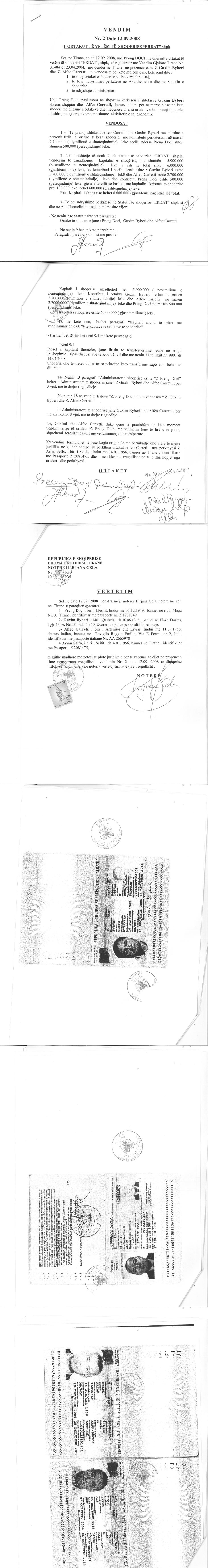 → Ekstrakt historik i regjistrit tregtar date 25.03.2022 → Akti i themelimit dhe statuti → Marreveshje siguruese date 30.03.2012 → Kontrate shitje- kuotash date 18.01.2010 → Kontrate shitje kuotash date 27.05.2010 → Vendimi per celjen dhe leshimin e deshmise se trashegimise ligjore date 17.07.2017 → Vendimi i ortakut te vetem per zmadhimin e kapitalit dhe pranimin e ortakeve te rinj, date 12.09.2008 → EKSTRAKT HISTORIK I REGJISTRIT TË PRONARIT PËRFITUES date 25.03.2022 → Ekstrakti Historik i Regjistrit Tregtar date 21.05.2024 → Kerkese per vendosjen e mases se sigurimit te detyrimit tatimor date 23.08.2023 |