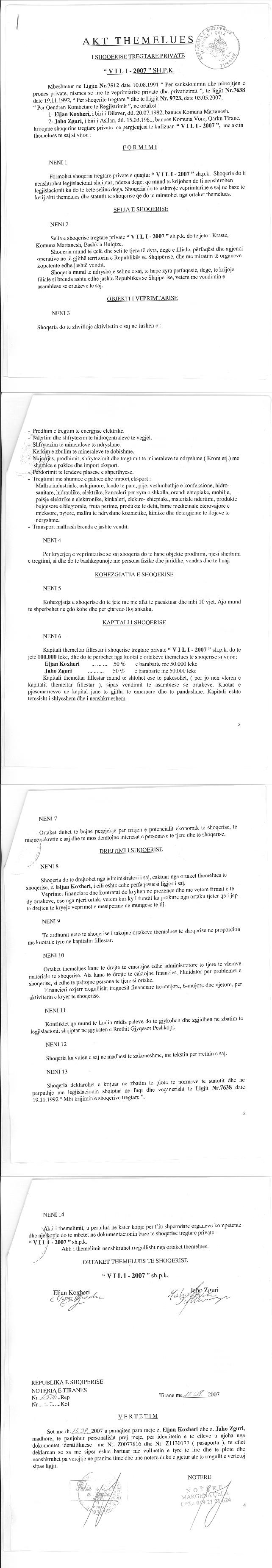 → Ekstrakti Historik i Regjistrit Tregtar date 12.05.2022 → Akt themelimi i Shoqerise → Kontrate e Shitjes se Kuotave date 07.04.2021 → Vendim i Asamblese se Pergjithshme date 10.02.2022 → Ekstrakti Historik i Regjistrit Tregtar date 02.04.2024 |