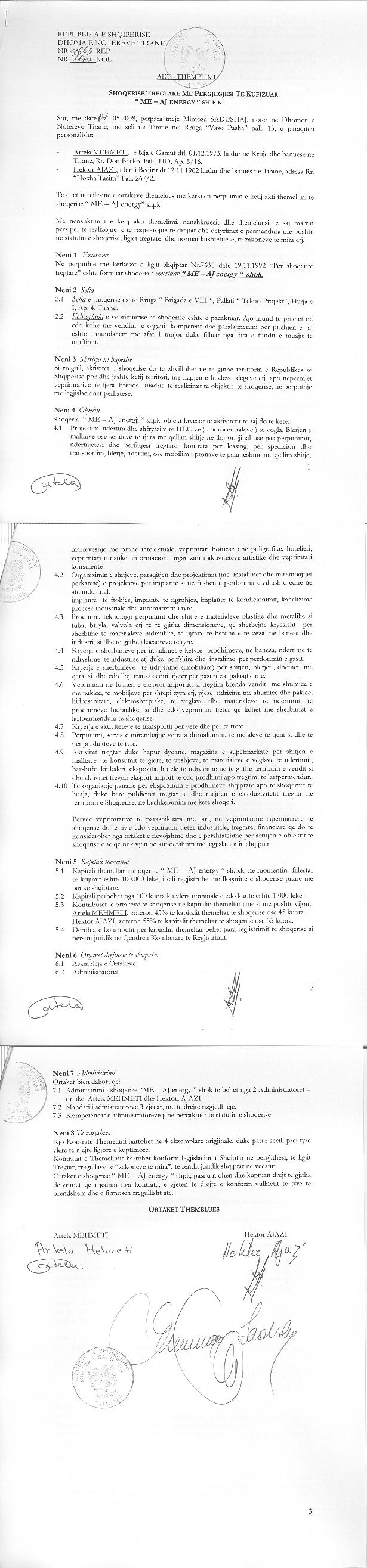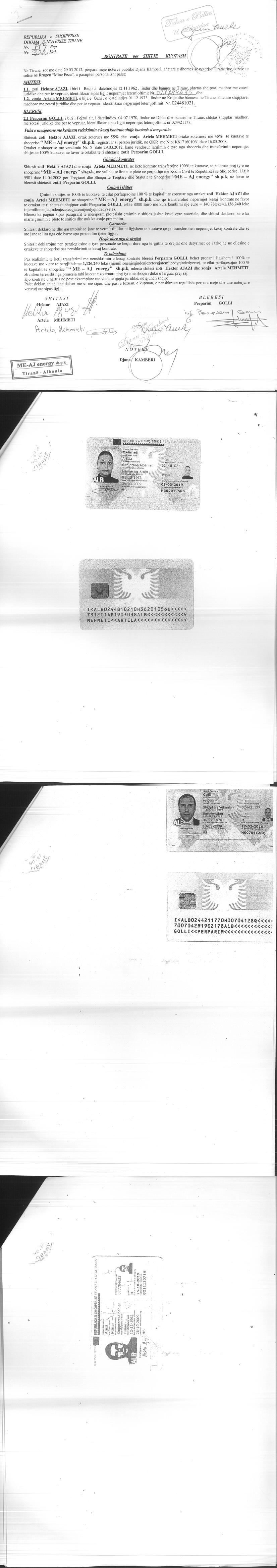 → Ekstrakt historik i regjistrit tregtar date 28.04.2022 → Akti i themelimit → Kontrate per shitje kuotash date 17.09.2012 → Kontrate per shitje kuotash date 29.03.2012 → Ekstrakti Historik i Regjistrit Tregtar date 17.05.2024 |