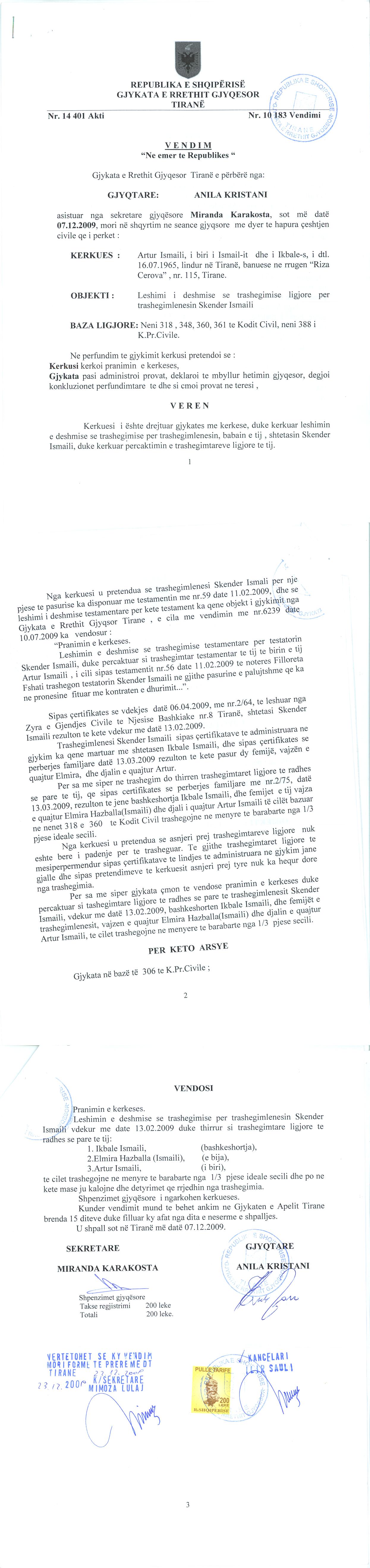 → Ekstrakti Historik i Regjistrit Tregtar date 31.05.2022 → Akt themelimi i Shoqerise → Kontrate Shitje Kuotash date 23.03.2007 → Deshmia e Trashegimise date 07.12.2009 → Kontrate Shitblerje Kuotash date 28.07.2010 → Kontrate Shitje Kuotash date 11.03.2014 → Urdher per Venie Sekuestro date 29.12.2015 → Ekstrakti Historik i Regjistrit Tregtar date 09.04.2024 → Urdher per heqjen e mases se sekuestros konservative date 15.11.2022 → Urdher per vendosjen e mases se sekuestros konservative date 05.09.2022 → Urdher per heqjen e mases se sekuestros konservative date 16.02.2023 |