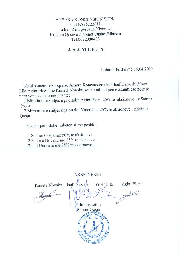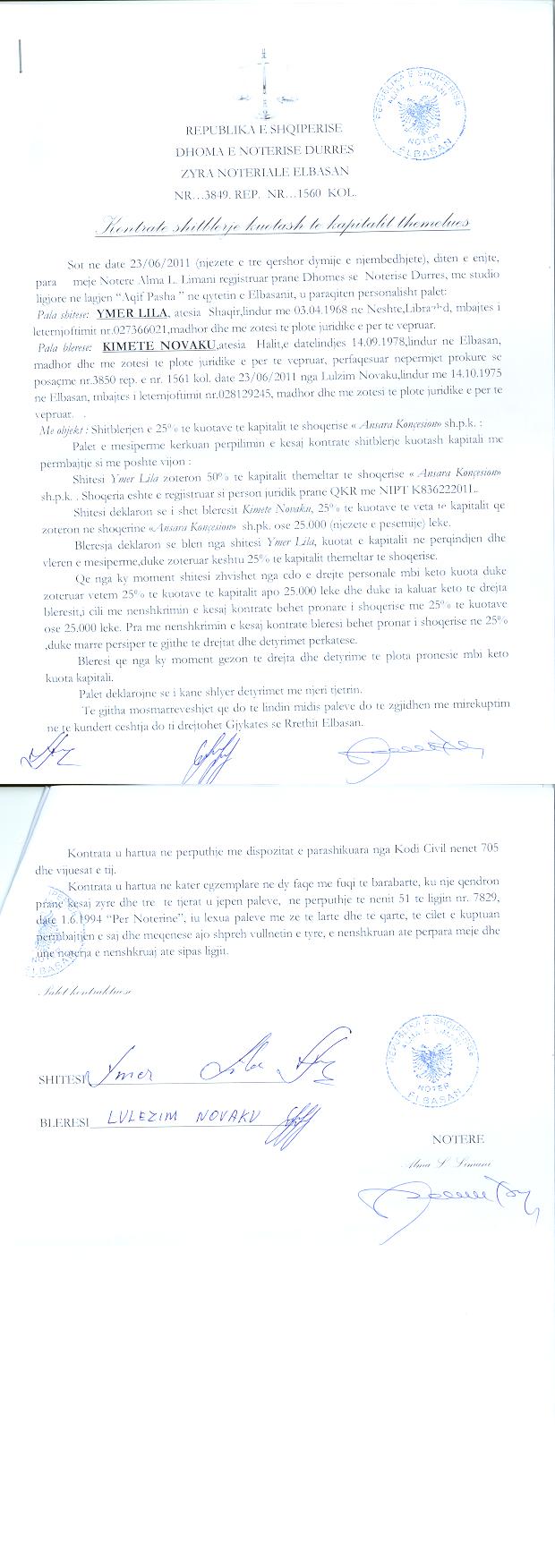 → Ekstrakt historik I regjistrit tregtar (09.05.2019) → Urdher per heqjen e mases se sekuestros 08.06.2016 → Urdher per vendosjen e mases se sekuestros 05.02.2016 → Urdher per vendosjen e mases se sekuestros 21.06.2013 → Ekstrakt historik I regjistrit tregtar (09.05.2019) → Urdher per heqjen e mases se sekuestros 08.06.2016 → Urdher per vendosjen e mases se sekuestros 05.02.2016 → Urdher per vendosjen e mases se sekuestros 21.06.2013 → Kontrate koncesioni 17.03.2008 → Ekstrakt historik i regjistrit tregtar 26.05.2022 → Urdher per heqjen e mases se sekuestros 08.06.2016 → Urdher per vendosjen e mases se sekuestros 05.02.2016 → Urdher per vendosjen e mases se sekuestros 21.06.2013 → Aneksi 1 → Kontrate shitje kuota kapitali date 05.03.2021 → Urdher per venien e sekuestros konservative date 19.08.2021 → Ekstrakti Historik i Regjistrit Tregtar date 14.08.2023 → Ekstrakti Historik i Regjistrit Tregtar date 27.03.2024 → Marreveshje e shitjes se kuotave date 04.01.2024 |