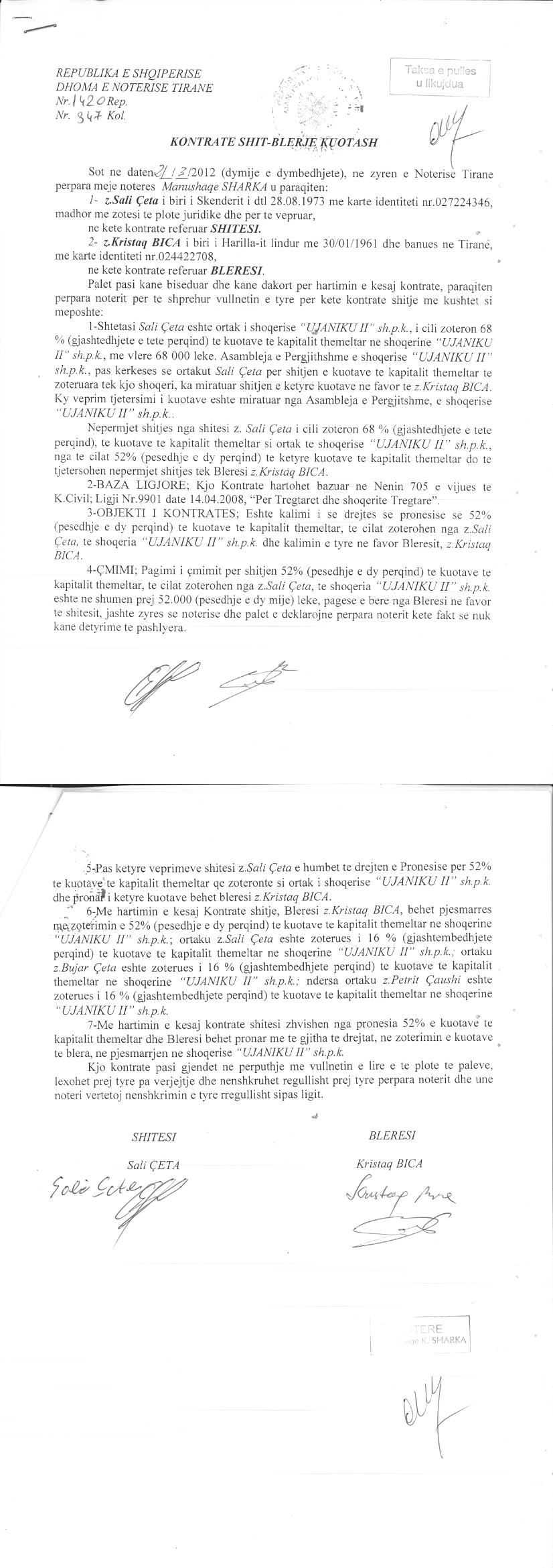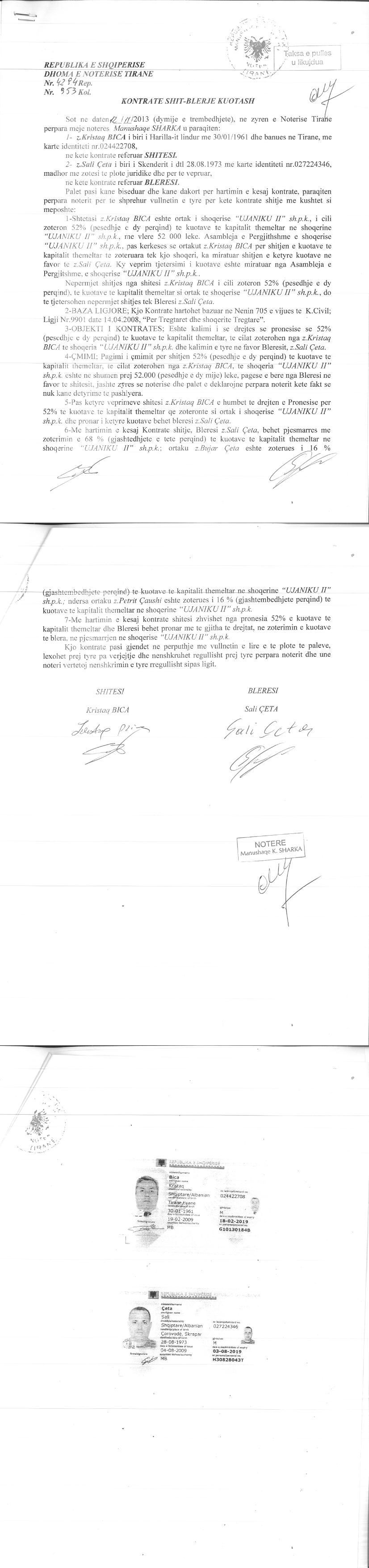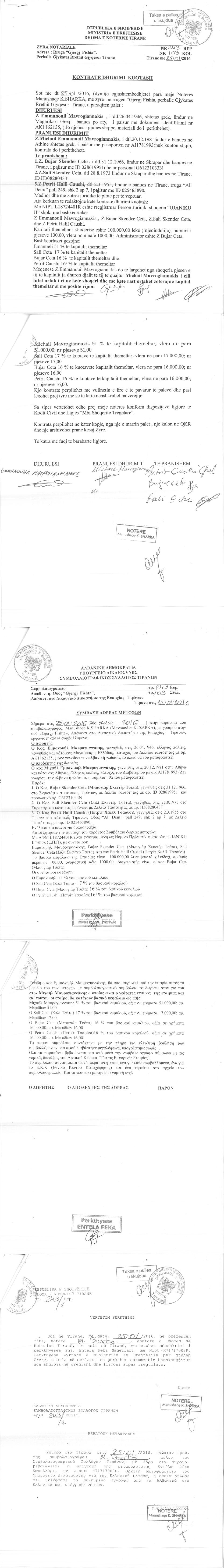 → Ekstrakti Historik i Regjistrit Tregtar date 16.05.2022 → Akt themelimi i Shoqerise → Kontrate e Shitjes se Kuotave date 09.03.2012 → Kontrate e Shitjes se Kuotave date 21.03.2012 → Kontrate e Shitjes se Kuotave date 12.11.2013 → Kontrate e Shitjes se Kuotave date 19.03.2014 → Kontrate e Dhurimit te Kuotave date 25.01.2016 → Ekstrakti Historik i Regjistrit Tregtar date 02.04.2024 |