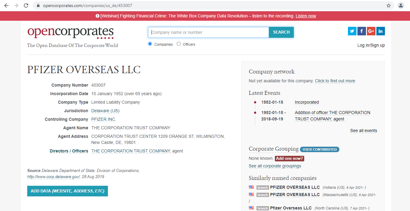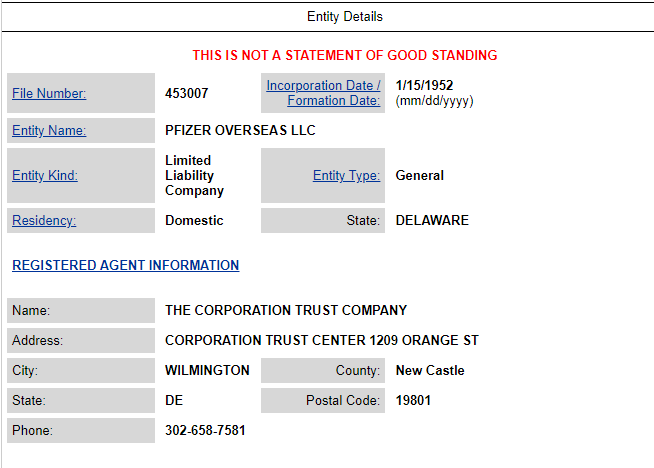 → Te dhenat e regjistrit tregtar Delaware per Pfizer Overseas Llc, date 17.06.2021 → Te dhenat per Pfizer Overseas Llc, sipas The Open Database Of The Corporate World, date 17.06.2021 |