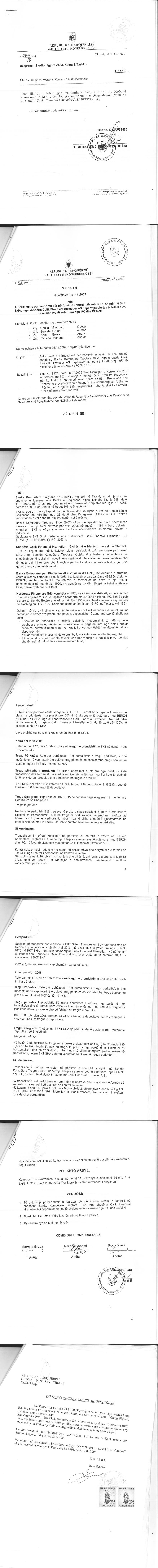 VIII. Më datë 31.03.2010, asambleja e aksionerëve ka vendosur rritjen e kapitalit të bankës nëpërmjet emtimit të aksioneve të reja, nga kapitalizimi i një pjese të fitimit neto të vitit 2009 në shumën 653.249.792 (gjashtëqind e pesëdhjetë e tre milion e dyqind e dyzet e nëntë mijë e shtatëqind e nëntëdhjetë e dy) lekë, i ekuivalentuar në 6.323.200 (gjashtë milion e treqind e njëzet e tre mijë e dyqind) USD, sipas kursit të këmbimit të Bankës së Shqipërisë në këtë datë 1 USD=103,31 lekë.