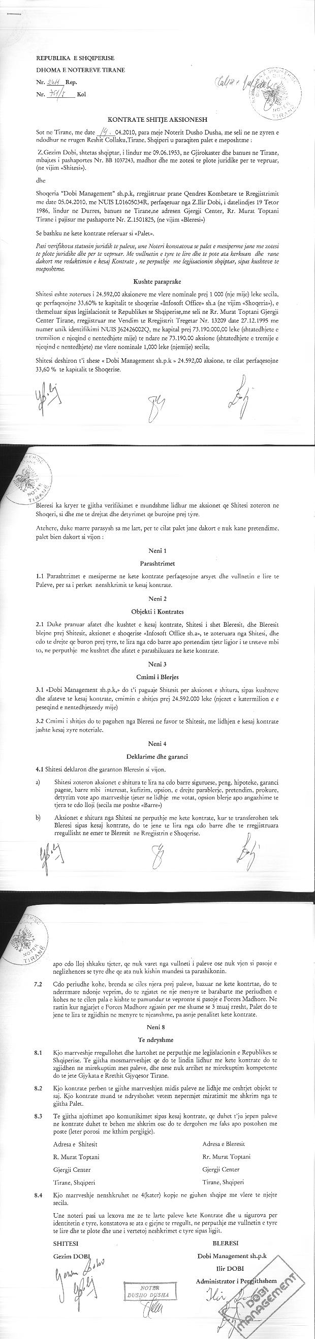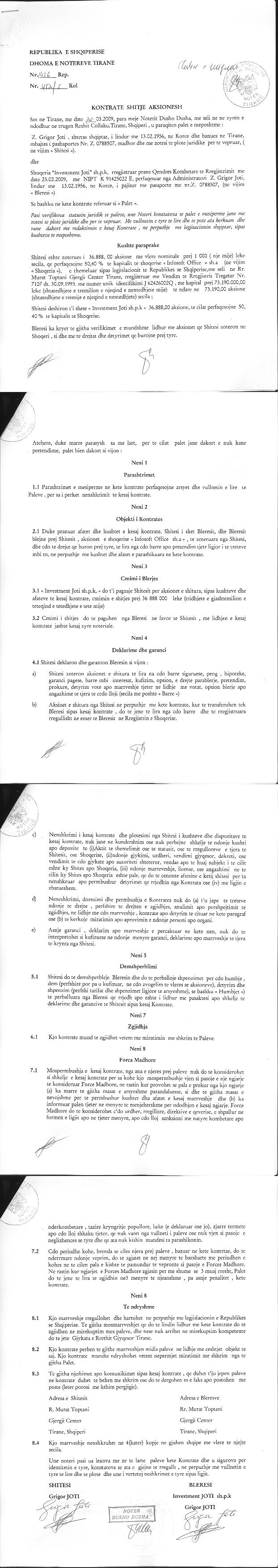 → Ekstrakt historik i regjistrit tregtar 08.06.2022 → Akti i themelimit → Kontrate per shitjen e aksioneve 29.06.2012 → Kontrate dhurimi kuotash 21.02.1997 → Kontrate shit-blerje aksionesh 06.10.2005 → Kontrate shitje aksionesh 20.03.2009 → Kontrate shitje aksionesh 14.04.2010 → Kontrate shitje aksionesh 20.03.2009 → Kontrate per shitjen e aksioneve 22.12.2011 → Vendim i asamblese se ortakeve per rritjen e kapitalit 20.08.2017 → Vendim i asamblese se aksionareve per shnderrimin e formes ligjore te shoqerise 13.12.2012 → Ekstrakti Historik i Regjistrit Tregtar date 15.05.2023 → Ekstrakti Historik i Regjistrit te Pronareve Perfitues date 04.08.2025 → Ekstrakt historik i regjistrit tregtar date 04.08.2025 |