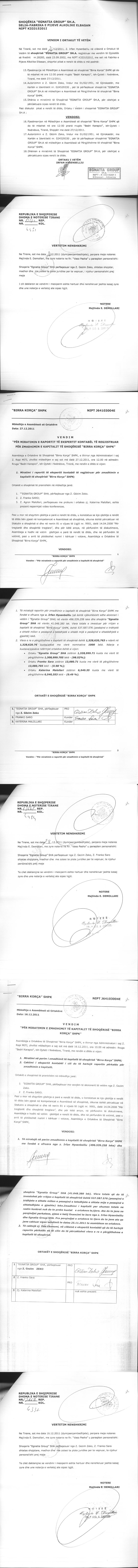 → Ekstrakt Historik i Regjistrit Tregtar date 26.05.2023 → Kontratë themelimi e Shoqërisë → Statuti i Shoqërisë → Vendim i Asamblesë së Ortakëve, Zmadhim Kapitali datë 20.06.1998 → Vendim i Asamblesë së Jashtëzakonshme, Zmadhim Kapitali datë 20.06.2005 → Vendim i Asamblesë së Ortakëve, Zmadhim Kapitali datë 27.09.2011 → Vendim i Asamblesë së Ortakëve, Zmadhim Kapitali datë 27.12.2011 → Kontratë Shitblerje Kuotash datë 28.06.2004 (a) → Kontratë Shitblerje Kuotash datë 28.06.2004 (b) → Trashëgimtarët Ligjor të ortakut Thanas Qeleshi , Vendim i Gjyqtarit të Vetëm datë 30.06.2004 → Kontratë Shitblerje Kuotash datë 30.06.2004 (a) → Kontratë Shitblerje Kuotash datë 30.06.2004 (b) → Kontratë Shitblerje Kuotash datë 10.07.2004 (a) → Kontratë Shitblerje Kuotash datë 10.07.2004 (b) → Kontratë Shitblerje Kuotash datë 23.07.2004 → Kontratë Shitblerje Kuotash datë 10.08.2004 → Kontratë Shitblerje Kuotash datë 01.10.2004 → Kontratë Shitblerje Kuotash datë 20.10.2004 → Kontratë për Shitje Kuotash datë 19.01.2013 → Marrëveshje Pengu mbi Kuotat datë 11.05.2015 → Ekstrakt Historik i Regjistrit te Pronareve Perfitues date 26.05.2023 |