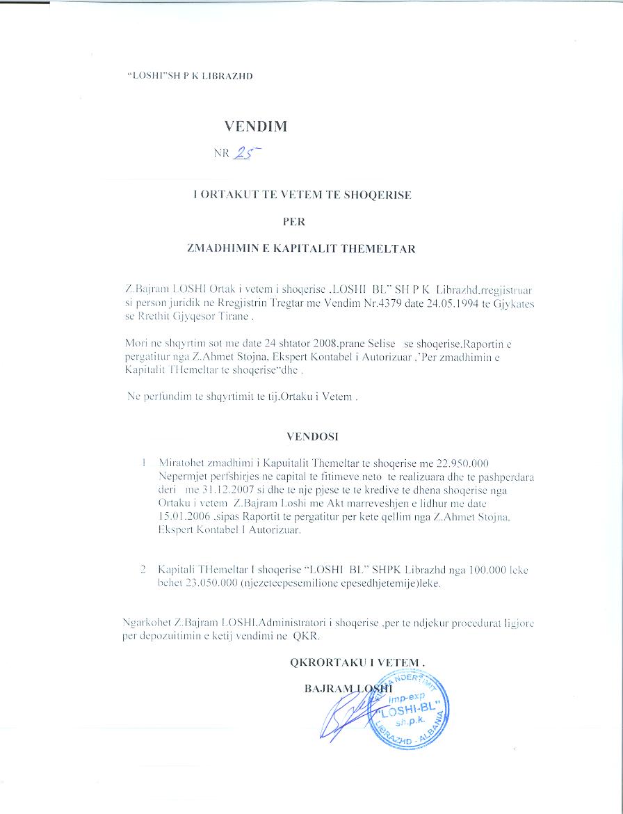 | Kapitali Themeltar(Lekë): | 23 050 000,00 |