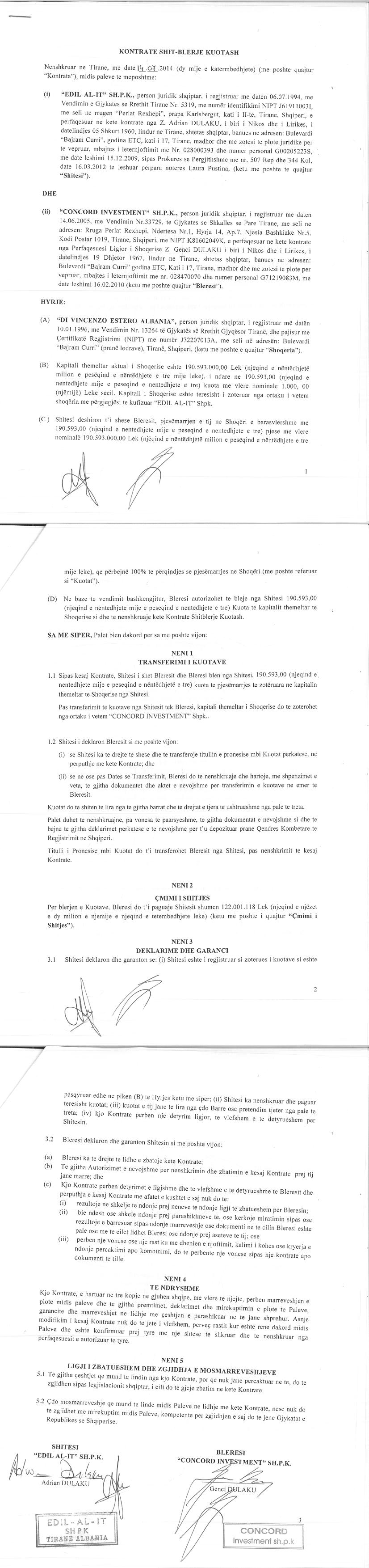 → Ekstrakt Historik i Regjistrit Tregtar date 23.06.2023 → Akt Konstitucioni dhe Statuti i Shoqërisë → Dokumenta të Ndryshme → Marrëveshje e transferimit të Kuotave datë 29.01.1997 → Revokim Marrëveshje e transferimit të Kuotave datë 26.01.1999 → Kontratë Shitje Kapitali datë 07.12.2000 → Kontratë Shijte e Kuotave të Kapitalit datë 21.07.2006 → Kontratë Shitblerje Kuotash datë 14.07.2014 → Vendim i Asamblesë së Ortakëve, Zmadhim Kapitali datë 21.01.1997 → Vendim i Asamblesë së Ortakëve, Zmadhim Kapitali datë 28.10.2000 → Vendim i Ortakut të Vetëm, Zmadhim Kapitali datë 17.12.2010 → Vendim i Ortakut të Vetëm, Zmadhim Kapitali datë 16.05.2014 → Projekt Marrëveshja e Bashkimit të Shoqërive "Safe Security Albania" shpk dhe "GLOB 06" shpk, nëpërmjet Përthithjes datë 07.10.2022 → Vendim i Asamblesë së Ortakut të Vetëm, Bashkimi me Përthithje datë 23.02.2023 → Ekstrakt Historik i Regjistrit te Pronareve Perfitues date 23.06.2023 |
