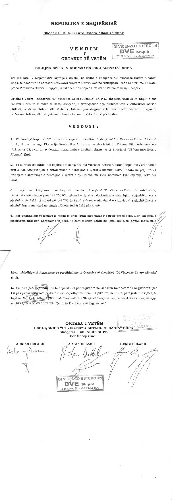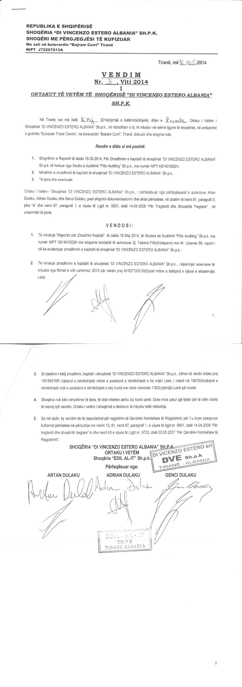 | Shënime: | Me datë 26.02.2018, me vendim të ortakut të vetëm, u shtua Drejtuesi Teknik Shpetim Fetah. |