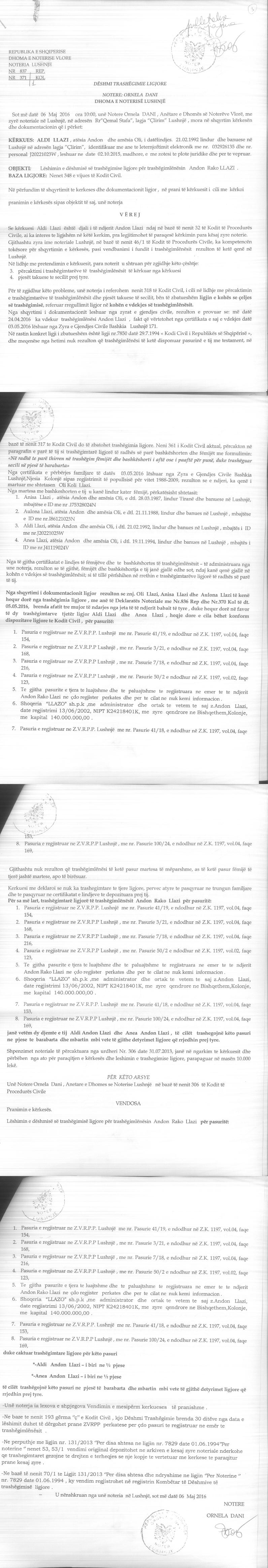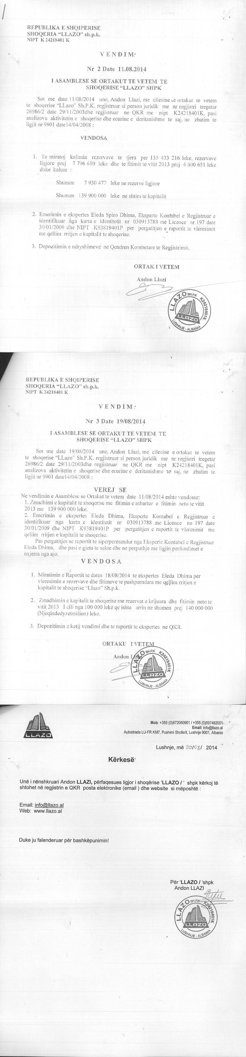 | Shënime: | Me date 28.07.2022, me vendim te asamblese se ortakeve, emerohet drejtues teknik i shoqerise Anea Llazi. |