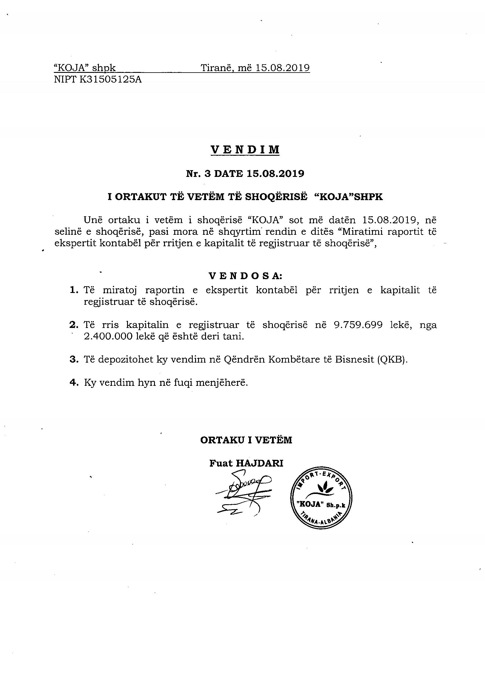 | Emërtime të tjera Tregtare: | KOJA SH.P.K |