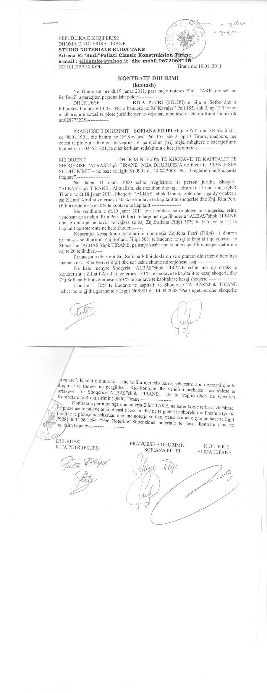 | Çështje Ligjore: | I. Me date 10.01.2019, u lidh marreveshja e bashkimit me perthithje ndermjet shoqerise “Albas” sh.p.k me shoqerine “Albas Office” sh.p.k. Bashkimi me perthithje eshte iniciuar nga ortaket e shoqerise Albas shpk, per realizimin e procesit te bashkimit me perthithje te shoqerise Albas Office shpk nga shoqeria Albas shpk. Shoqeria “Albas Office” sh.p.k zoterohet 100% nga shoqeria Albas shpk. Shoqeria perthithese eshte “Albas” sh.p.k dhe shoqeria e perthithur eshte “Albas Office” sh.p.k. Shoqeria “Albas Office” sh.p.k transferon plotesisht elementet e aktivit dhe te pasivit tek shoqeria “Albas “ Shpk. II. Me date 12.01.2019, me vendim te asamblese se ortakeve, u miratua operacioni i bashkimit me perthithje. Perkundrejt kontributit te dhene shoqeria “Albas Office” shpk do t’i jape ortakeve te saj pjese kapitali sic percaktohet ne projektin e bashkimit, ku kapitali ndahet ne dy kuota me vlere 173.056.000 (njeqind e shtatedhjete e tre milion e pesedhjete e gjashte mije) leke. Kapitali i shoqerise “Albas” shpk eshte 332.112.000 (treqind e tridhjete e dy milion e njeqind e dymbedhjete mije) leke dhe kapitali i shoqerise “Albas Office” shpk eshte 14.000.000 (katermbedhjete milion) leke. Kapitali i shoqerise “Albas” shpk pas zmadhimit do te jete sa shuma e kapitaleve te dy shoqerive, duke shkuar ne vleren 346.112.000 (treqind e dyzet e gjashte milion e njeqind e dymbedhjete mije) leke. |