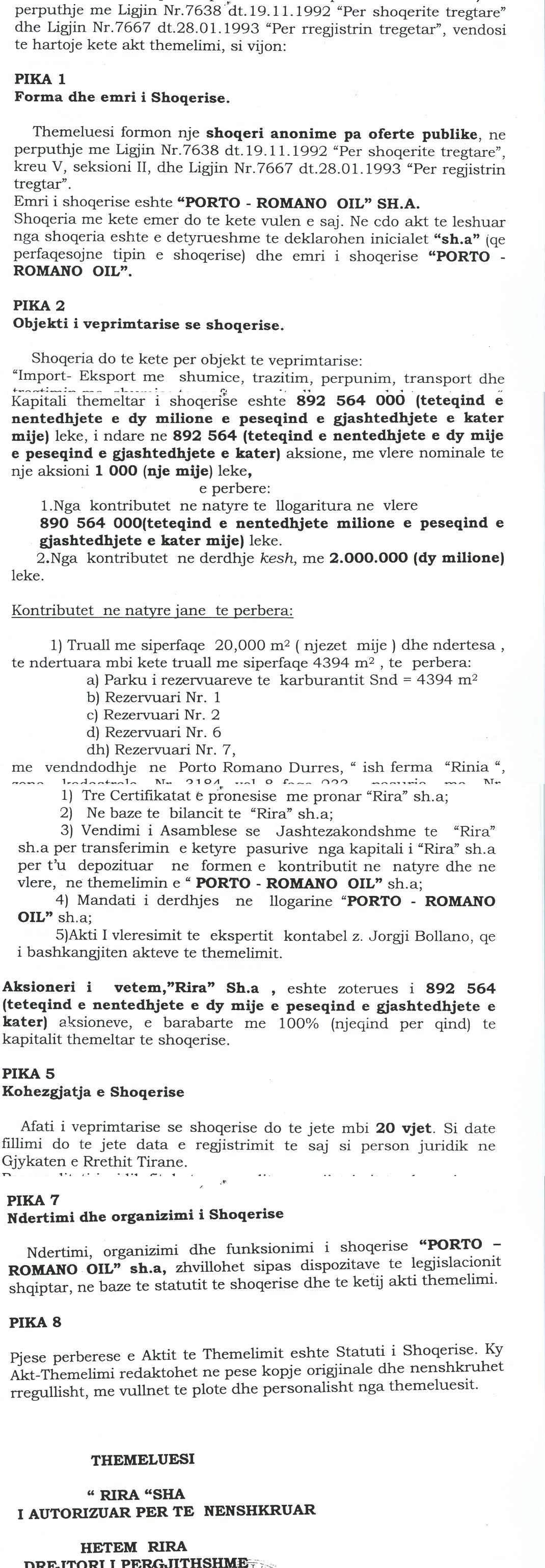 PORTO ROMANO OIL(PRO sh.a) (Ish PORTO ROMANO OIL)