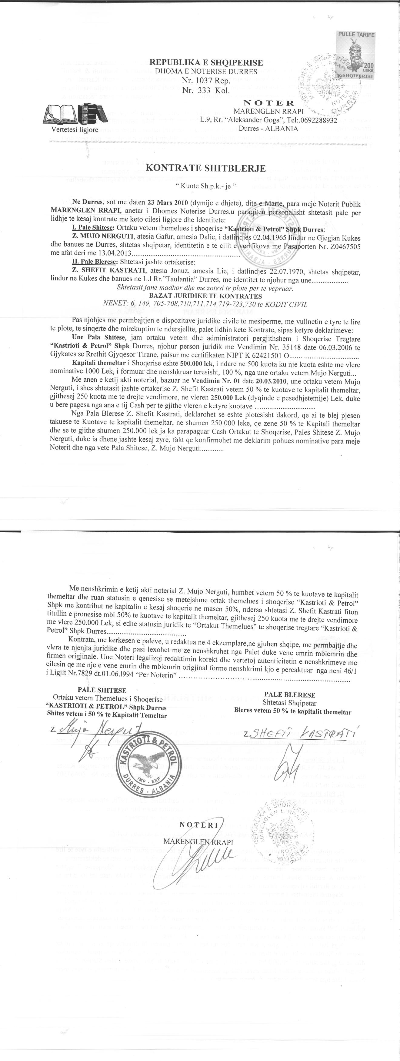| Emërtime të tjera Tregtare: | KASTRIOTI & PETROL |
