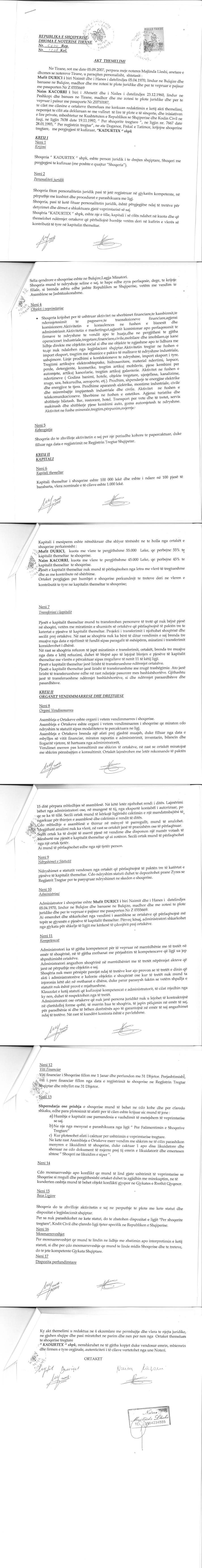 | Forma ligjore: | Shoqëri me Përgjegjësi të Kufizuar SH.P.K |