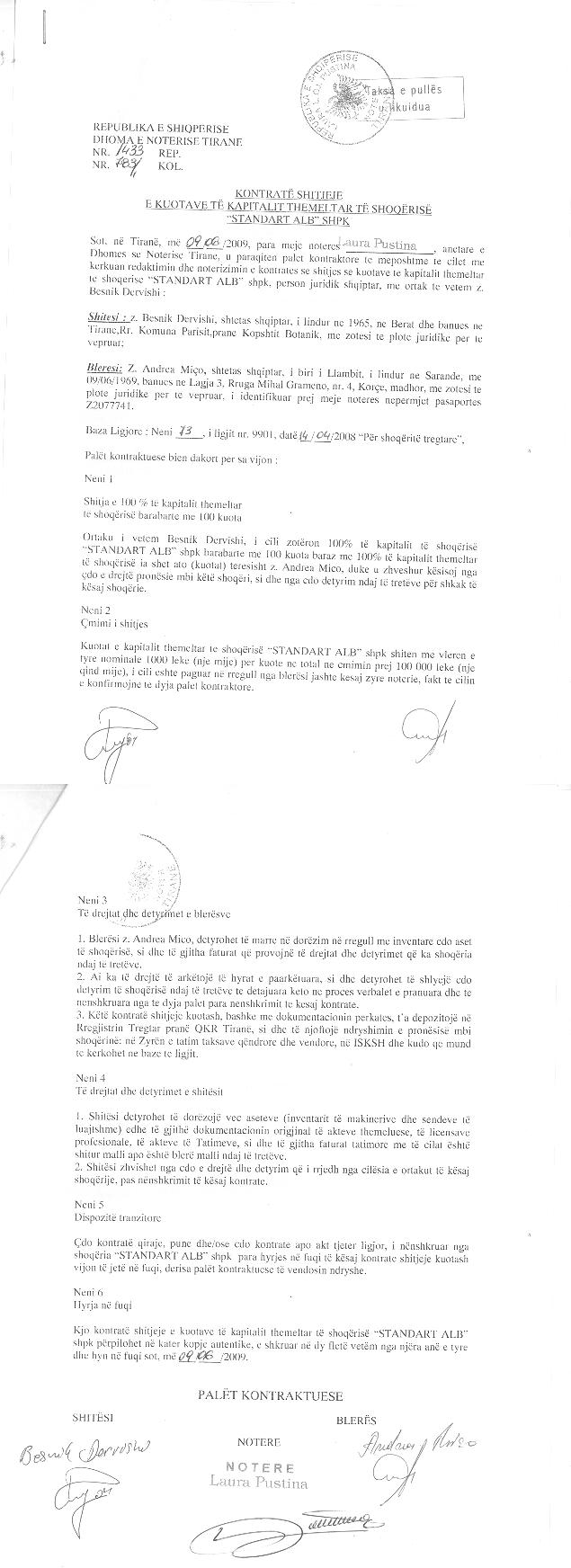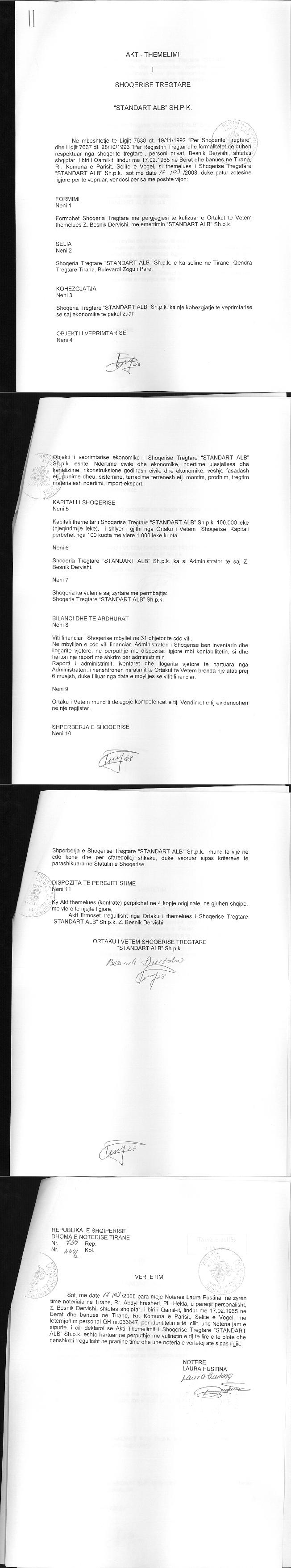 → Ekstrakt Historik i Regjistrit Tregtar date 08.07.2024 → Akt themelimi i Shoqerise → Kontratë Shitje Kuotash Kapitali Themeltar datë 09.06.2009 → Kontratë Shitje Kuotash Kapitali Themeltar datë 27.04.2010 |