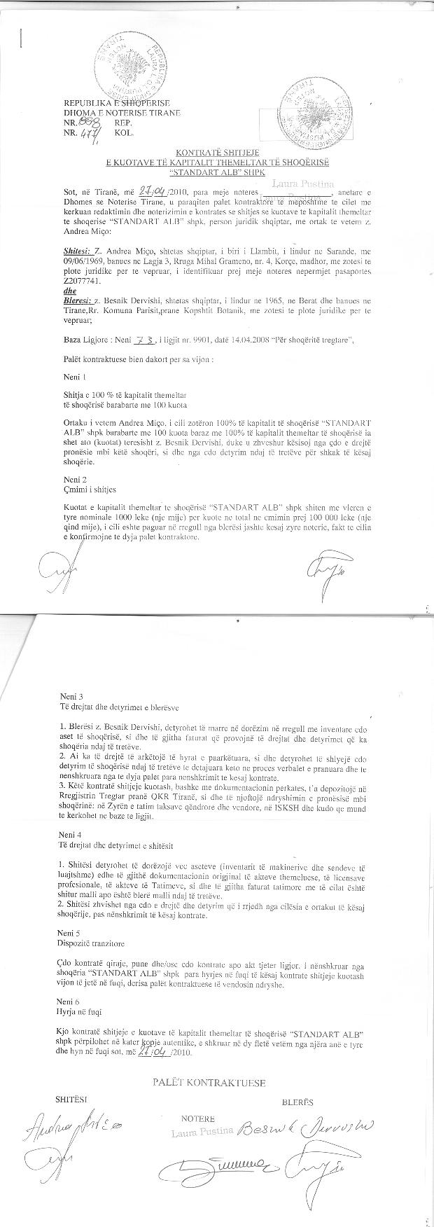 me NIPT K81528015P, me administrator z. Besnik Dervishi dhe në emër të aksionarëve të
