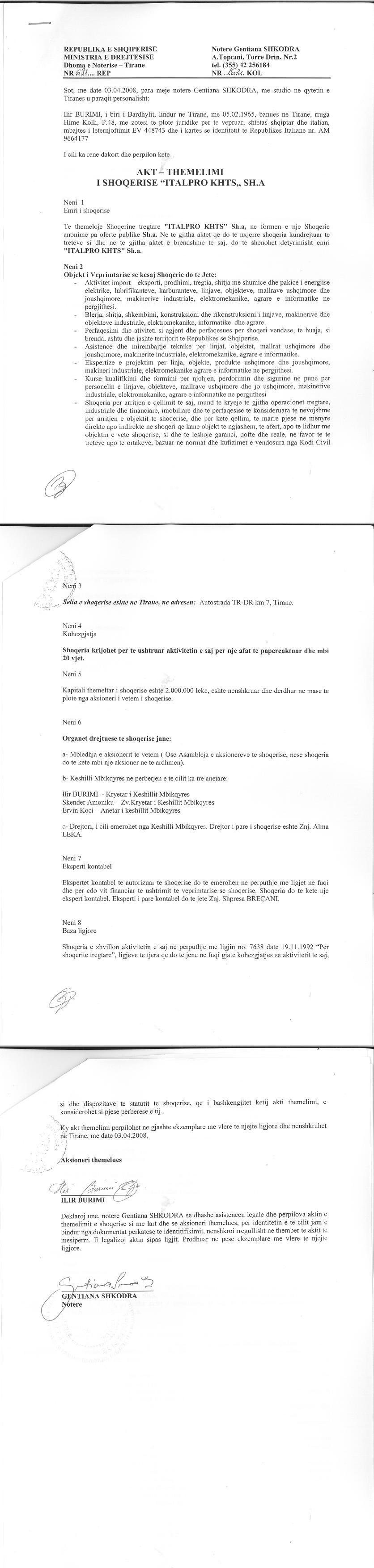→ Ekstrakt Historik i Regjistrit Tregtar date 07.09.2022 → Akt themelimi i Shoqerise |