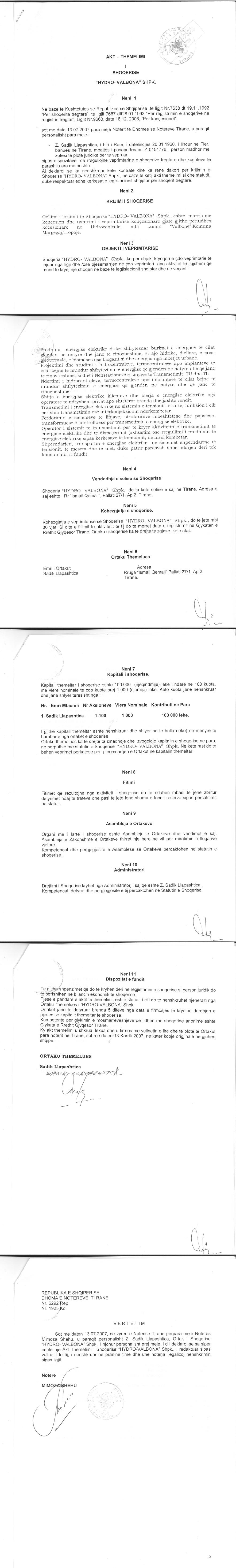 → Ekstrakt Historik i Regjistrit Tregtar date 18.04.2024 → Akt themelimi i Shoqerise → Kontratë Shit-Blerje Kuotash datë 08.01.2016 → Kontratë Shit-Blerje Kuotash datë 10.09.2017 → VENDIM Nr. 86, Datë 20.04.2018 MBI LICENCIMIN E SHOQËRISË “SEMAN SUNPOWER” SH.P.K. NË AKTIVITETIN E PRODHIMIT TË ENERGJISË ELEKTRIKE NGA CENTRALI FOTOVOLTAIK TOPOJË (SHEQ MARINAS) ME FUQI TË INSTALUAR 2000 KW → Ekstrakt historik i regjistrit tregtar date 10.10.2025 |