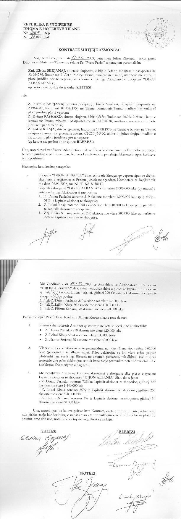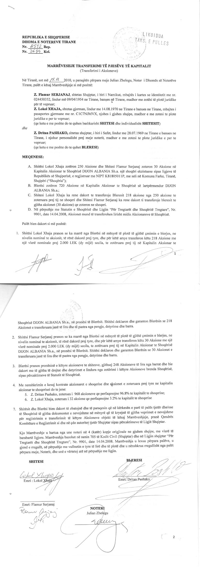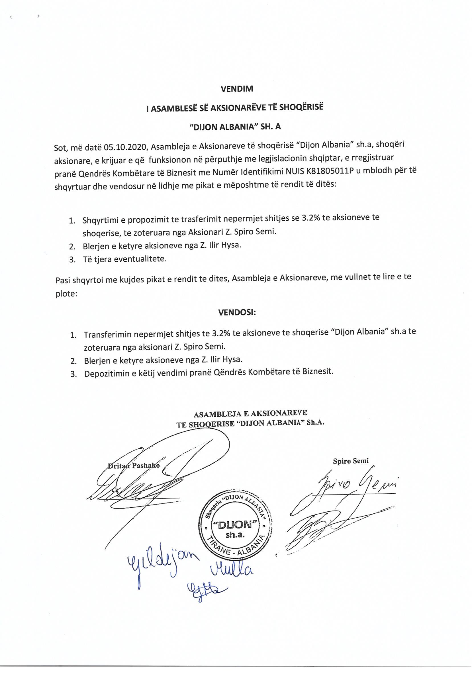 shitblerje aksionesh të subjektit " DIJON ALBANIA " ,pajisur me NUIS (NIPT)-