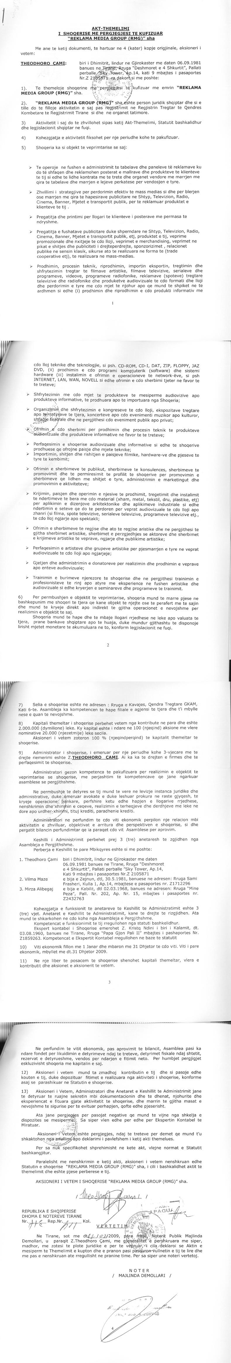 → Ekstrakt historik i regjistrit tregtar 03.03.2021 → Akti I themelimit → Kontrate per shitje aksionesh 13.01.2012 → Kontrate per shitje aksionesh 22.01.2014 → Kontrate per shitje aksionesh 20.09.2016 |