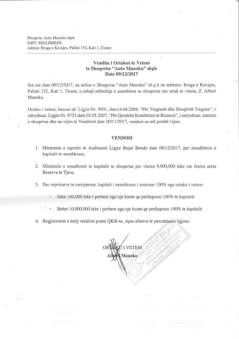 → Ekstrakt historik i regjistrit tregtar 06.07.2021 → Akti i themelimit → Vendim i ortakut te vetem per zmadhimin e kapitalit date 09.12.2017 → Ekstrakt Historik i Regjistrit Tregtar date 07.02.2024 |