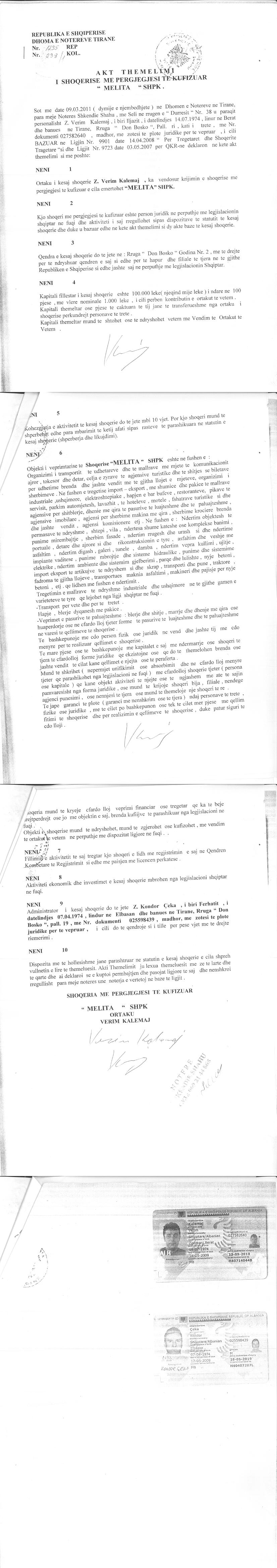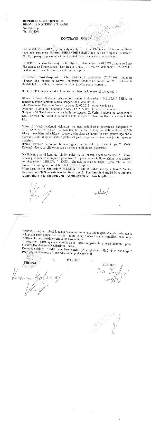 → Ekstrakt Historik i Regjistrit Tregtar date 26.05.2023 → Akt themelimi i Shoqerise → Kontratë Shitje datë 25.05.2012 → Kontratë Shitje Kuotash datë 11.02.2013 → Ekstrakt Historik i Regjistrit te Pronareve Perfitues date 26.05.2023 |
